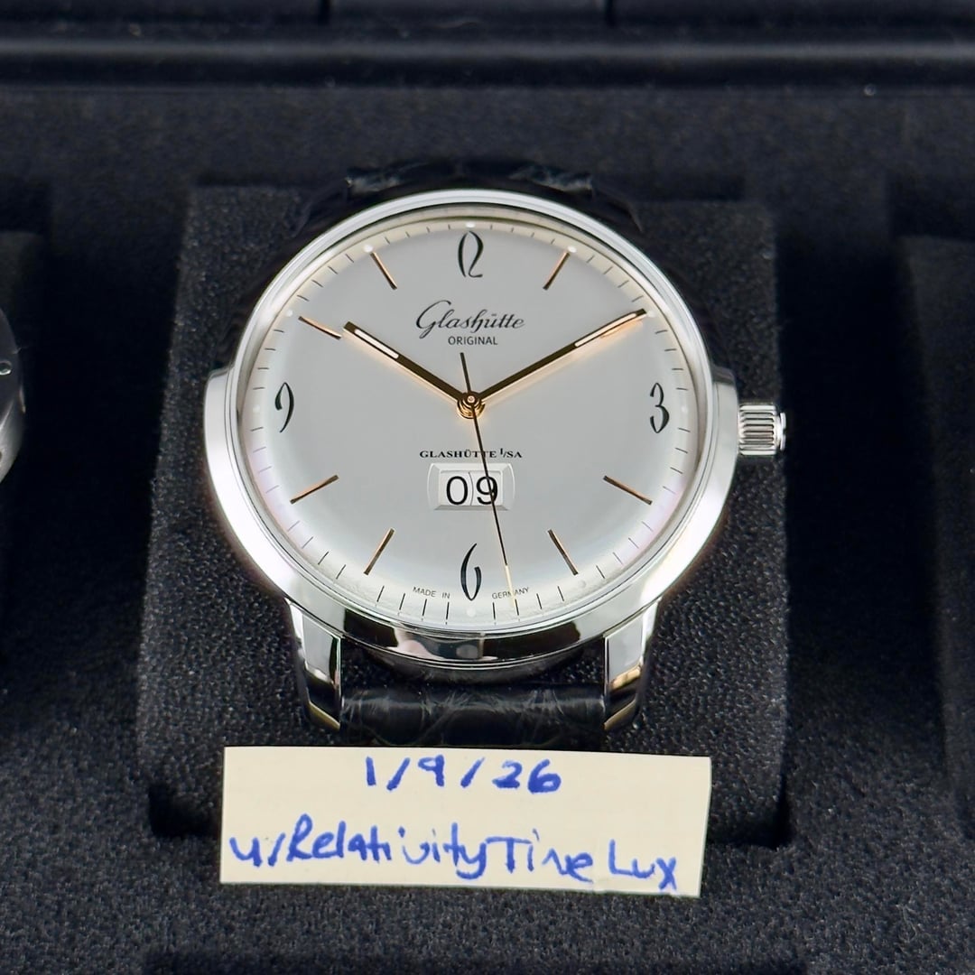 **Key Details:** * **Condition**: In very good condition, rated at 9.8/10, with minimal handling marks. See detailed photos for full transparency. * **Included**: Inner & outer Glashütte Original boxes, booklets, and papers (dated 2021). * Reference: 2-39-47-01-02-04 **Asking**: 6150 **Trades Welcome** RelativityTimeLux All pics -> [https://imgur.com/a/wr7zPAF](https://imgur.com/a/wr7zPAF) Timestamp -> [https://imgur.com/uTz6f2H](https://imgur.com/uTz6f2H)