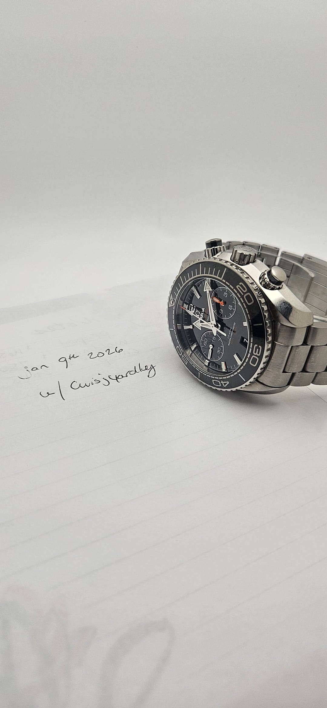 Hi all, Looking to part ways with my 2023 model year Full kit Planet Ocean Omega Seamaster. 600M water resistance, jump hour capabilities, chronograph functions & helium escape to name a few features. 45.5mm diameter 215.30.46.51.01.001 Watch is in great shape with 18 months warrenty still remaining. Only noticeable mark is at the 7 minute marker on the bezel, bracelet has some wear. Seeking 5500 USD. Watch is located in Ontario but will ship from Mi to avoid duties and taxes for US buyer Thank you,