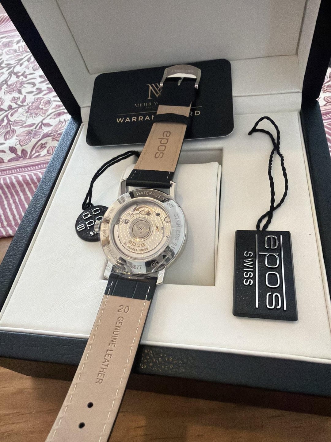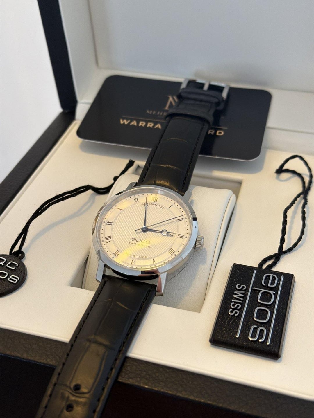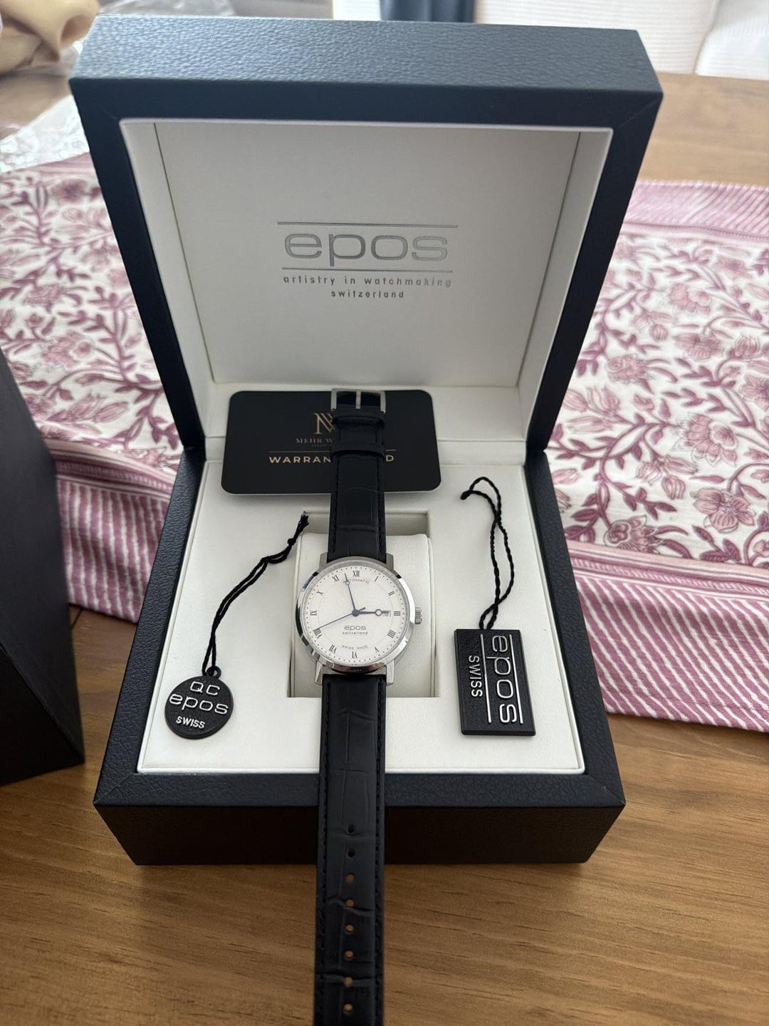 Hello fellow watch enthusiasts, I am offering a beautiful, brand-new EPOS automatic watch, sold as a full set including all papers. This is a private sale. ⸻ Condition • New & unworn • The watch has never been worn and is in mint condition • Unfortunately, it has to leave because I have my eye on a Tudor ⸻ Scope of Delivery • Original EPOS box • Warranty card / papers • Full set as delivered by the manufacturer ⸻ Technical Details • Movement: Automatic • Case diameter: 39 mm • Crystal: Sapphire • Lug width: 20 mm ⸻ Reference EPOS Ref. 3387.152.20.28.15 Official product page: https://epos.ch/de/product/3387-152-20-28-15/ ⸻ Price €990 Current retail price at EPOS: €1,479 In my opinion, this represents an excellent value.