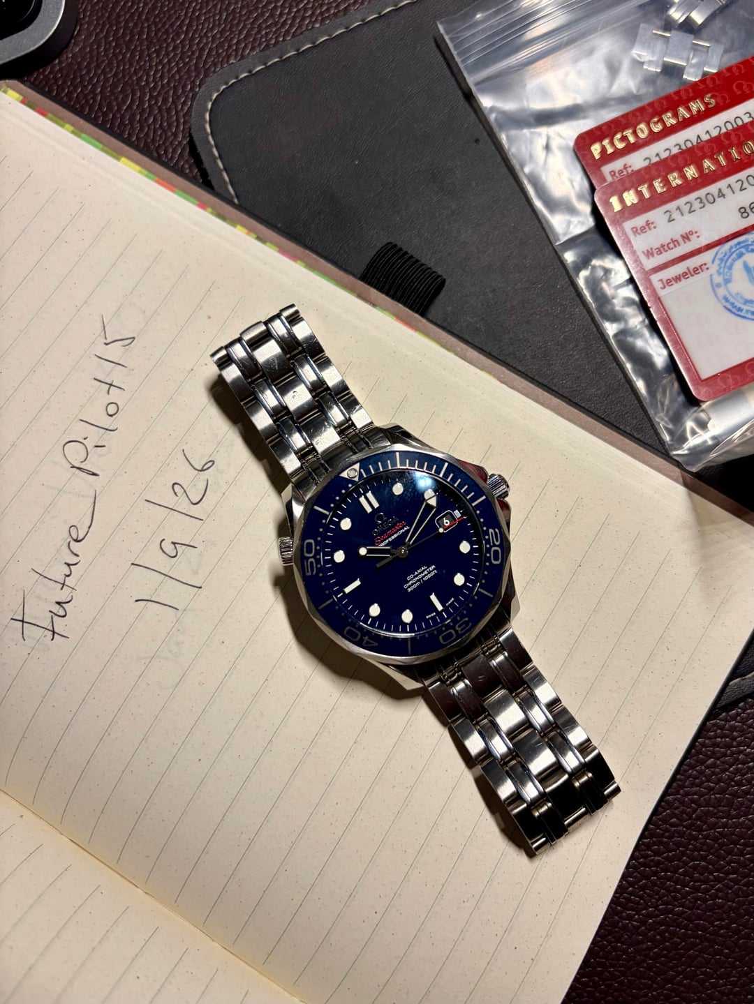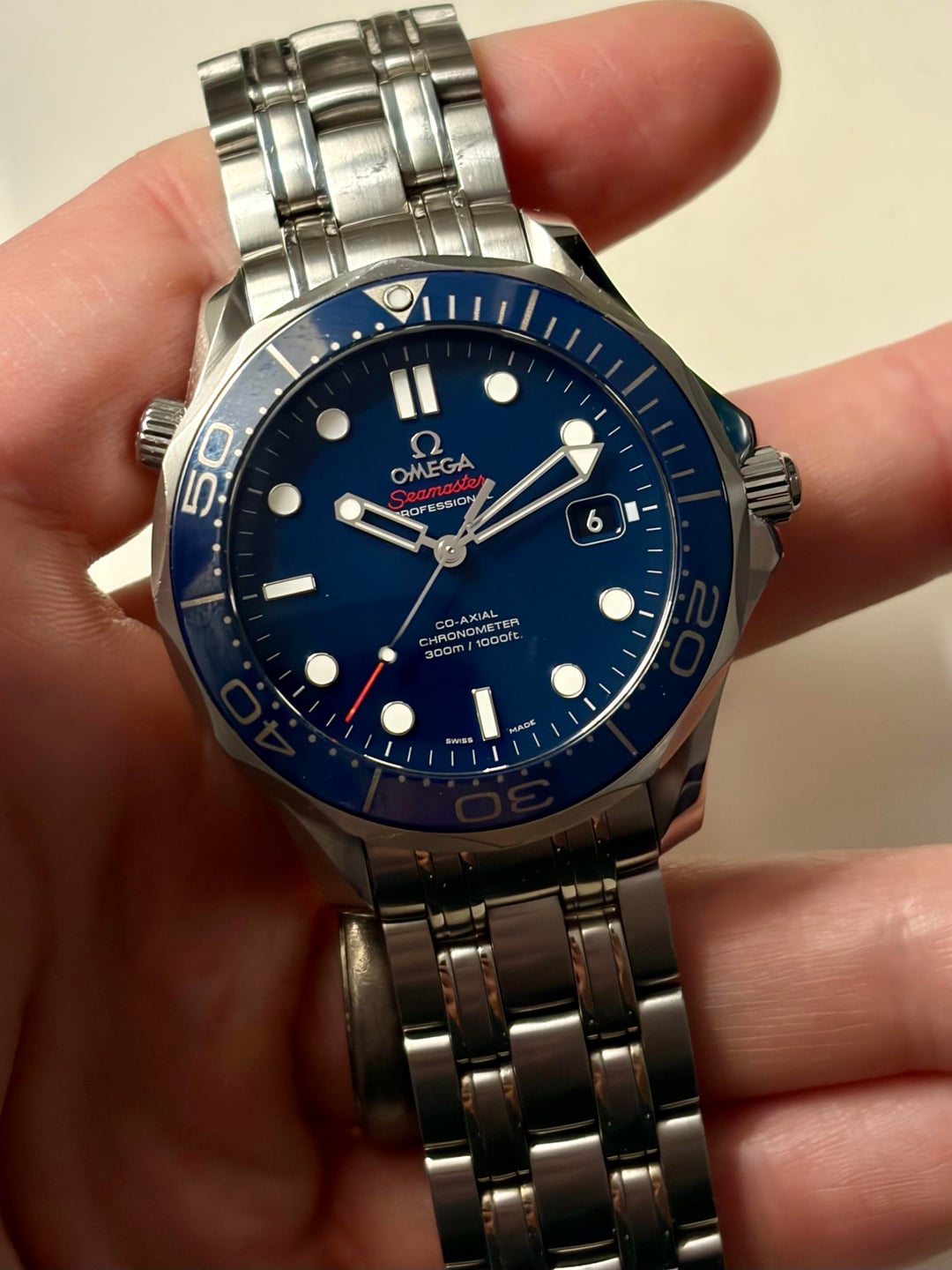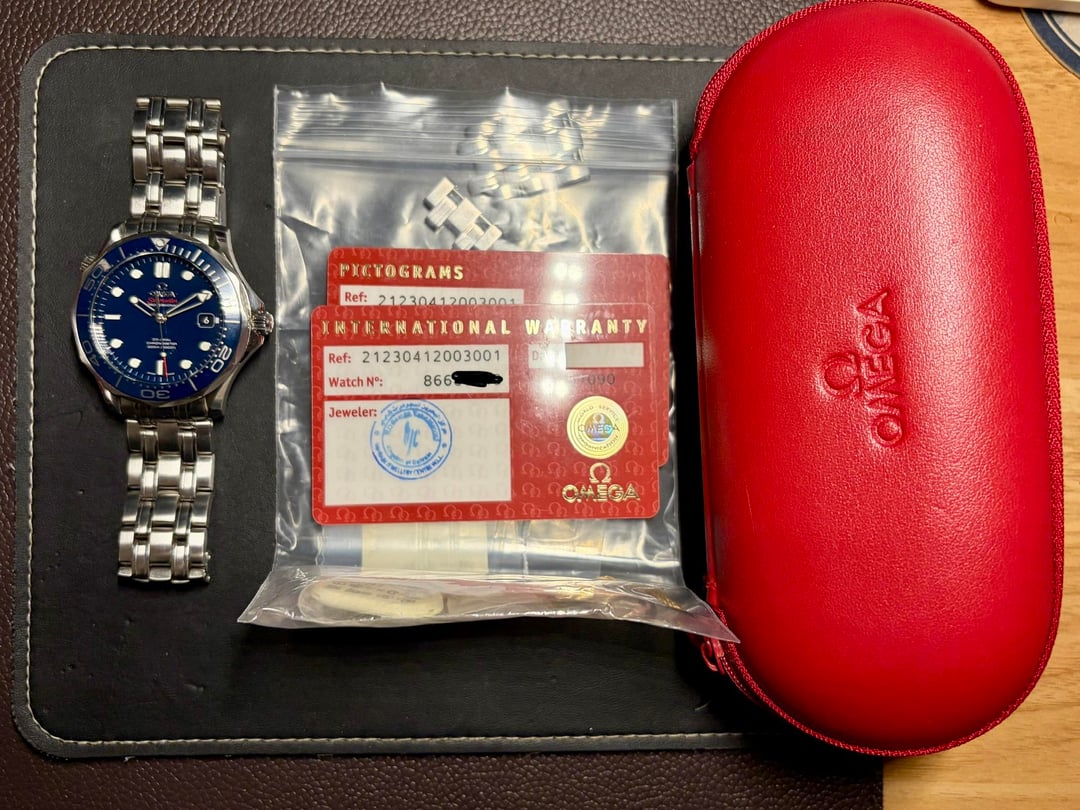 For sale is my Omega Seamaster SmPc. I bought this watch last year and wore it mostly this summer. When I got it, it was In unworn condition. The case is sharp and never been polished. Minor scratchers here and there from typical wear. Really good condition overall. Keeps great time. Comes with Omega carry case, pictograms card warranty card plus hang tag and all links. Price is firm shipped. $2950. Album and [Timestamp](https://www.dropbox.com/scl/fo/v4uz1c6gs7lmn5jah0nk3/AHaOZidtffpAwMk_slVmUmY?rlkey=zwff6gu4lpcvaqb06flo31bdq&e=1&st=fa9n8e9c&dl=0)
