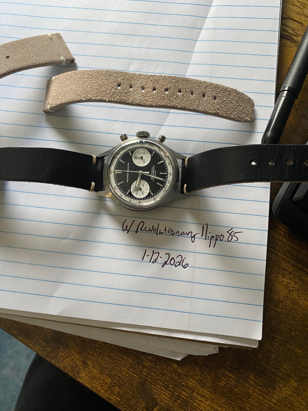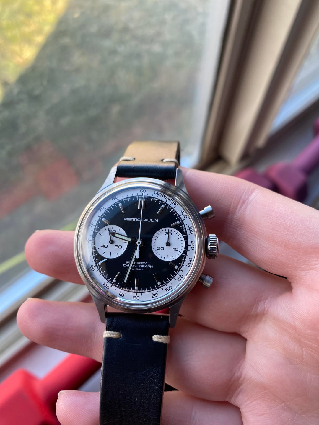 Good morning, WatchEx! Today I have my Merkur, Pierre Paulin chronograph for sale. I am offloading some watches due to needing cash. Have been off of work for a couple of weeks due to a fusion surgery. Money is more important now than a watch! This is in like new condition and comes with a basically brand new 18mm leather horween strap. I am asking EDIT(did more research and I was asking too much) : $150. Would use this as a partial trade for an (don’t shoot me) Apple Watch Ultra. Pm with any questions. I’ll be here!