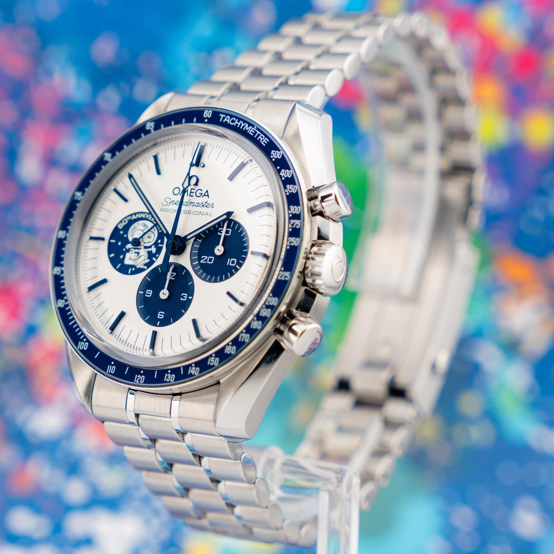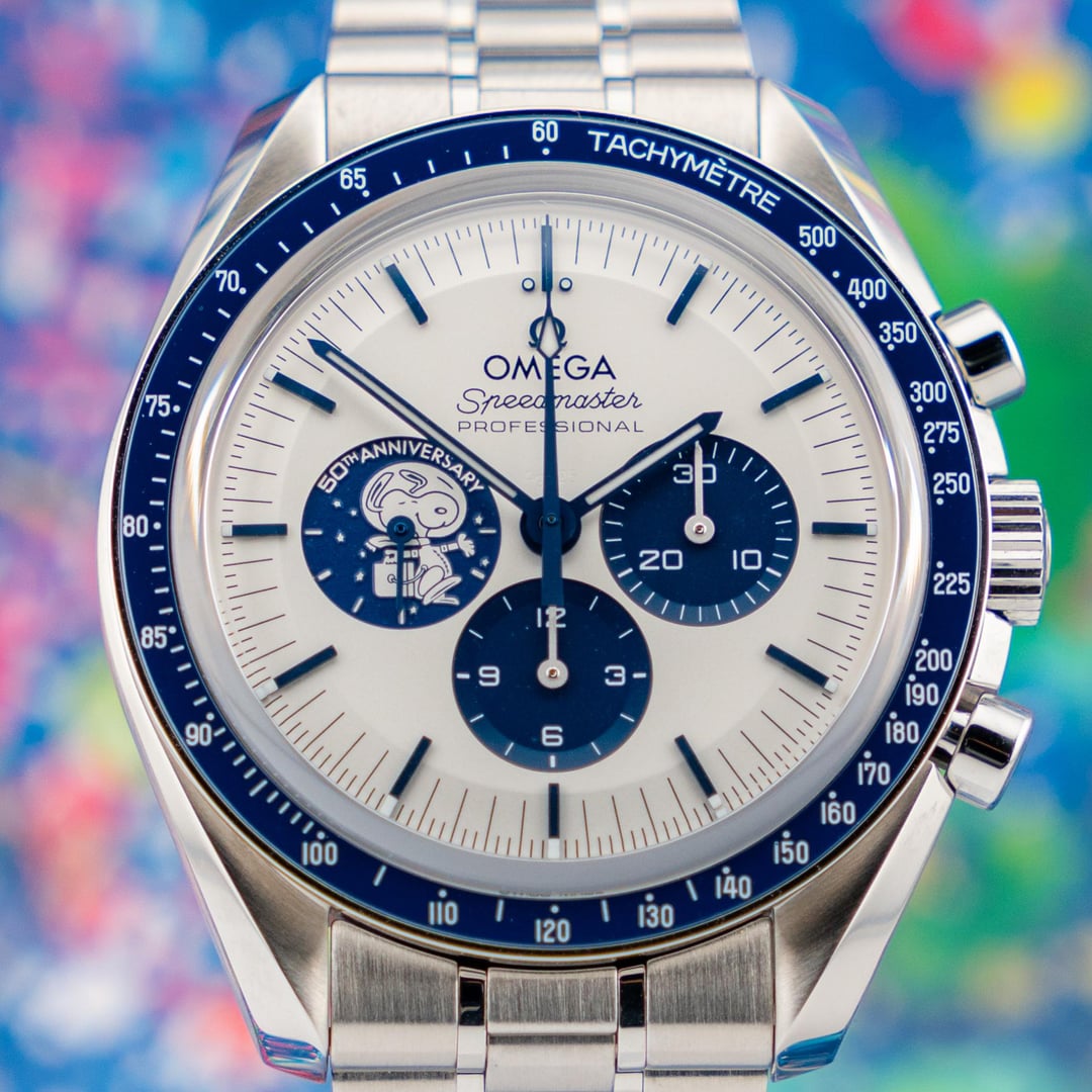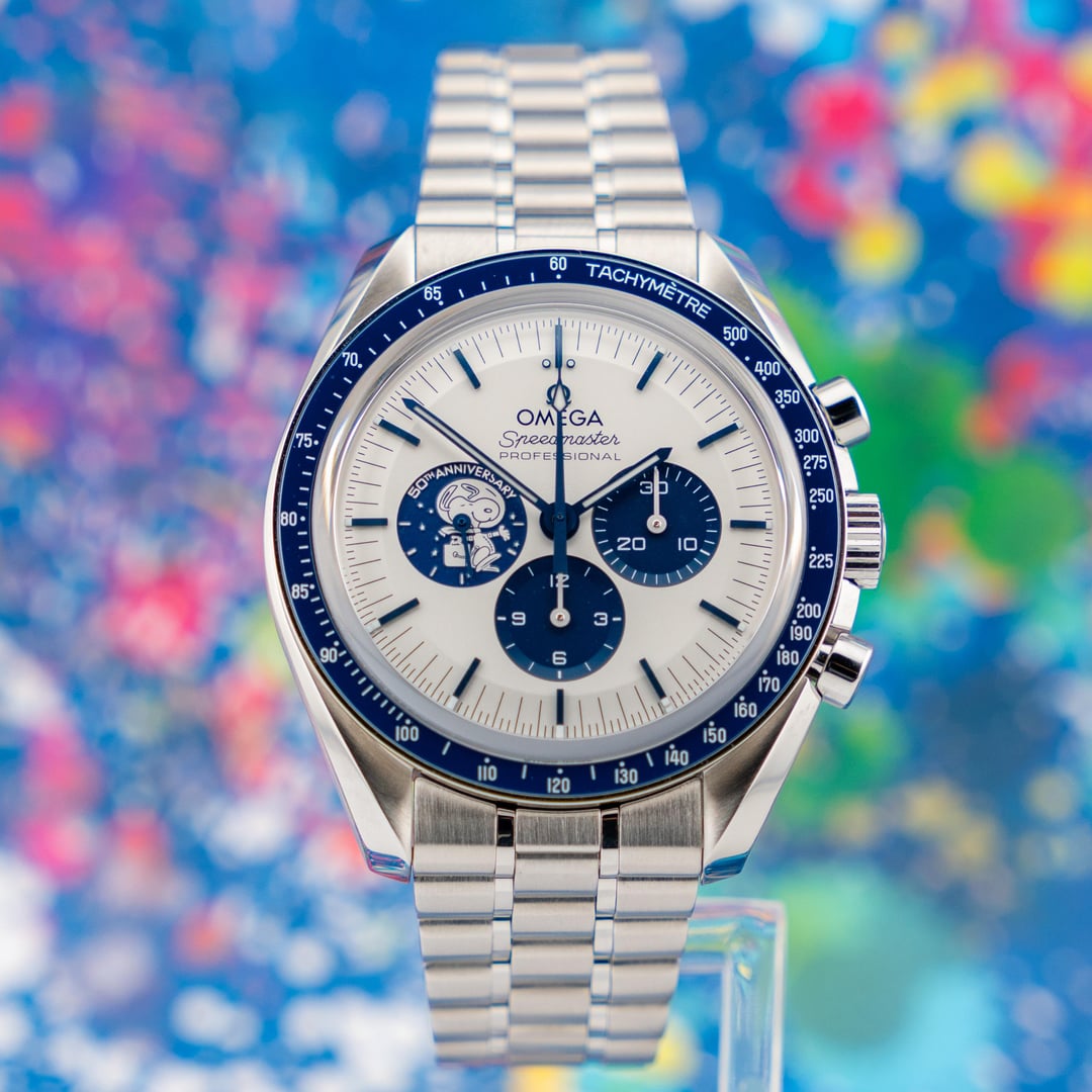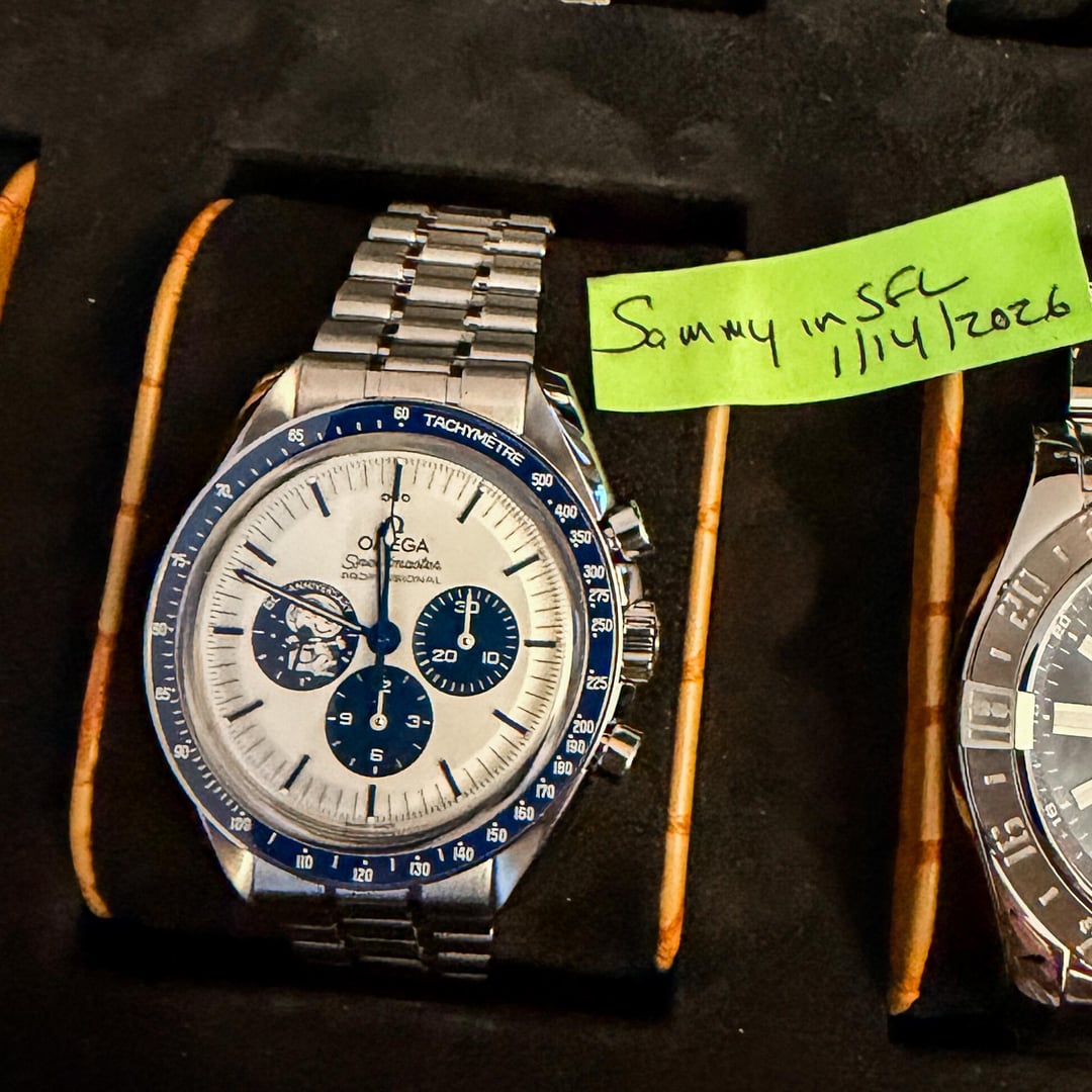 **\[WTS/WTT\] Omega Speedmaster “Silver Snoopy Award” 50th Anniversary – 2022 – Full Set + Omega Service Dec 2025** If you’re going to own a modern Speedmaster, this is the one that actually tells a story. Offered here is a **2022 Omega Speedmaster “Silver Snoopy Award” 50th Anniversary**, reference **310.32.42.50.02.001**, in **Very Good Condition** and coming as a **true complete set** — not the watered-down version people love to call “full set.” This watch commemorates Omega’s Silver Snoopy Award from NASA for its critical role in the Apollo 13 mission, and Omega absolutely nailed the execution. The silver dial with blue accents is clean, balanced, and unmistakably Speedmaster, while the blue ceramic bezel with white enamel tachymeter adds just the right amount of pop without screaming for attention. Then there’s the caseback — arguably the most creative caseback Omega has ever produced. Activate the chronograph and Snoopy travels around the Moon while the Earth rotates in the background. All mechanically driven. No electronics. No gimmicks. It’s clever, technically impressive, and still very much a serious watch. This example comes on the stainless steel bracelet **and** includes the original factory blue nylon strap. It was **recently serviced by Omega in December 2025**, and the Omega service card is included — meaning it’s freshly gone through and ready for years of use. # Included: * Outer Box * Inner Box * Commemorative Book * Loupe * Travel Bag * Card Holder * Instruction Manual * **All 3 Original Cards** * **Omega Service Card (Dec 2025)** * Stainless Steel Bracelet * Original Factory Strap **Price:** **- $15,995 + LBL** **Shipping:** FedEx Priority Overnight, fully insured (Hold at Location for $5k+)