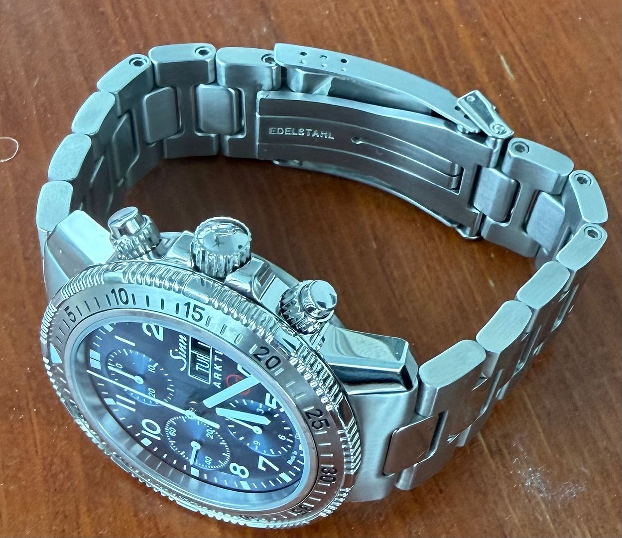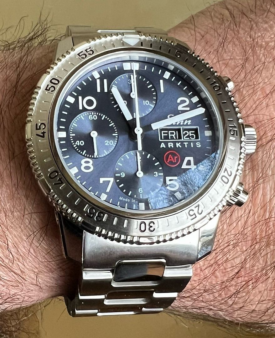 For sale is my Sinn Arktis II (Ref# 206.015) Chronograph on H-Link Bracelet. Watch is in Excellent Condition and runs great. All functions work as they should and it keeps excellent time. Still under Mfg new watch warranty until 10/2026. Purchased new from WatchBuys 10/2023.