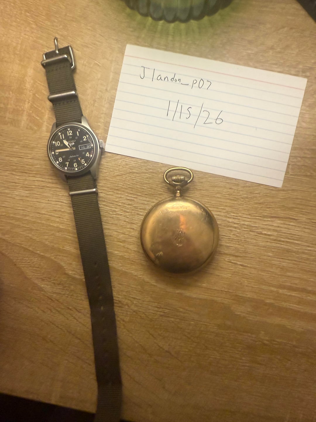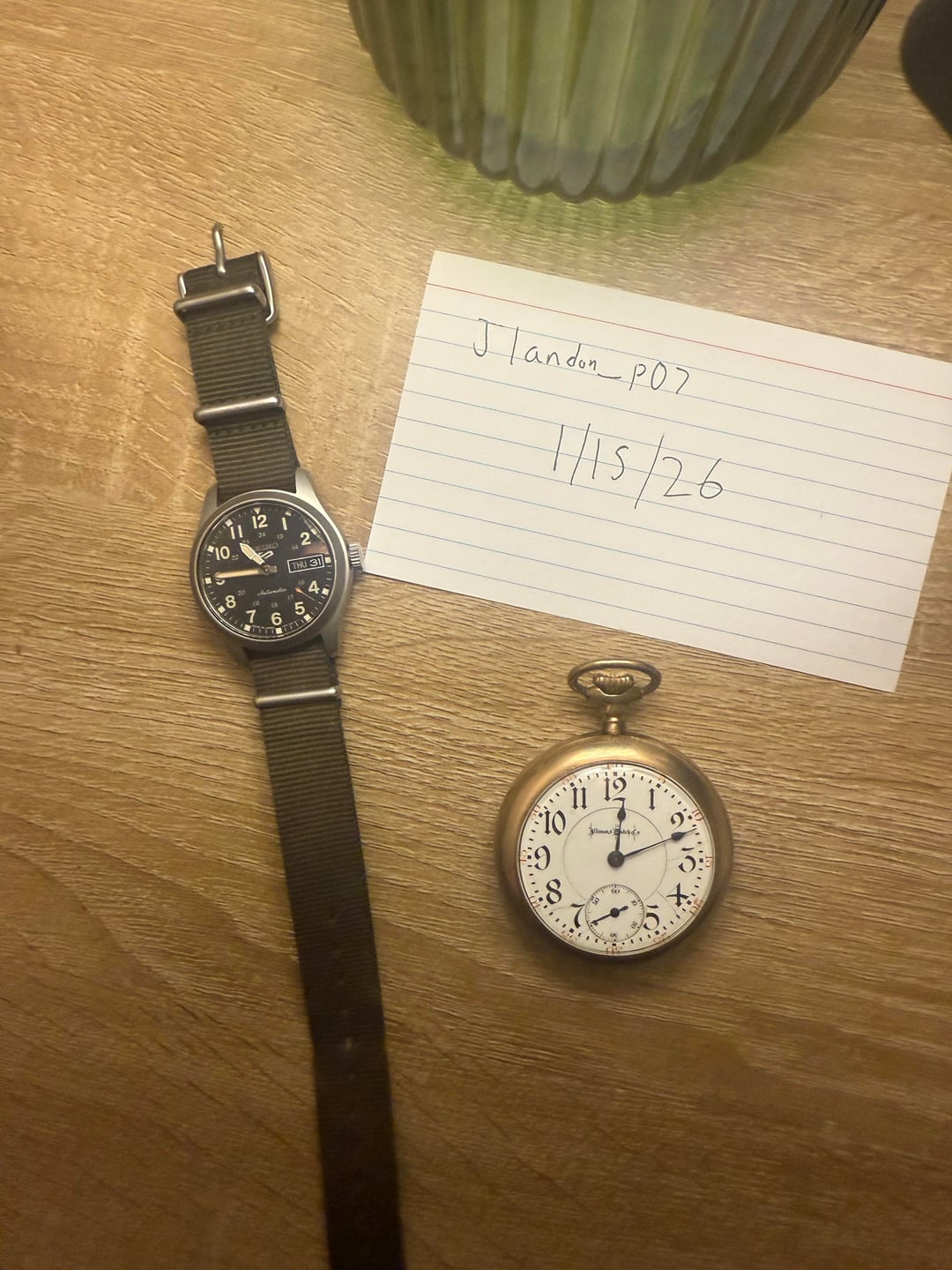 Sup guys. I’m not positive on the date of manufacture on the pocket watch. I guess around 1920-1930. Watch is in great shape for the age. Still winds and runs perfect! Comps online look like they’re listed for $400-600 +\- so I’m starting it at $250. I’m up to offers tho if it’s not worth my asking. I’m off work tomorrow and can ship either watch. The seiko is in used but decent condition. It has a few scratches on the crystal but runs great. I bought it last year for work but found I like my g shock better for that. Thanks!