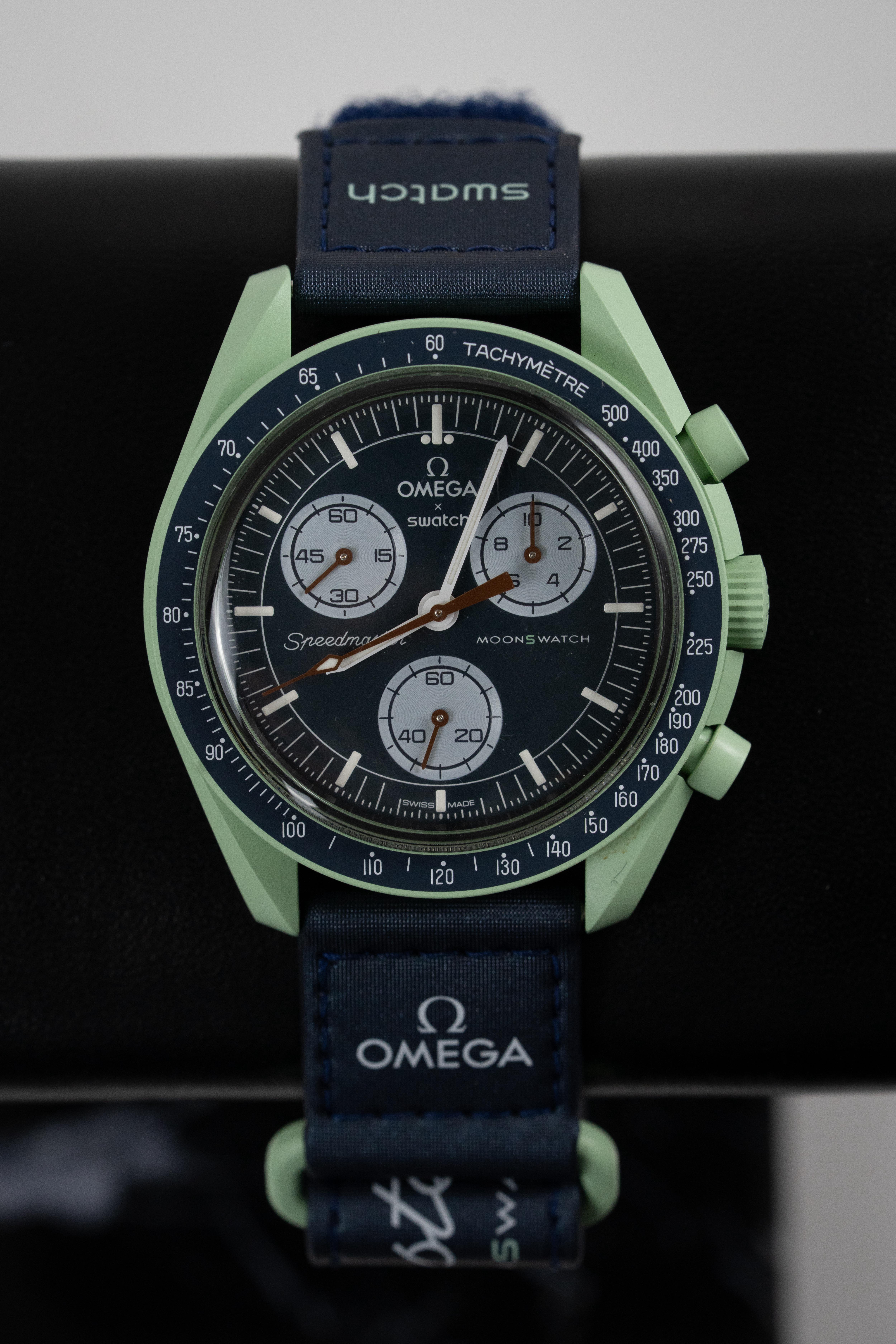 Offered for sale is an Omega x Swatch Speedmaster MoonSwatch “Earth”. This example is a full set and presents in good overall condition. The watch shows light wear consistent with use, with minor swirls on the crystal. Functions properly and wears great on the wrist. [Timestamp + Photos](https://imgur.com/gallery/omega-earth-YIaq0Uq) [Instagram](https://instagram.com/walkerwristco) **Details:** • Model: Omega x Swatch Speedmaster MoonSwatch Earth • Case: Bioceramic • Crystal: Acrylic • Strap: OEM Velcro **Included:** • Watch • Box • Papers • Full set **Price:** 💲2️⃣0️⃣0️⃣+🏷️ Location: Dallas, TX **Payment:** Zelle, PayPal, Venmo FF or G&S (buyer adds 3.5%) Face-to-face deal welcome locally. Happy to answer questions or provide additional photos.