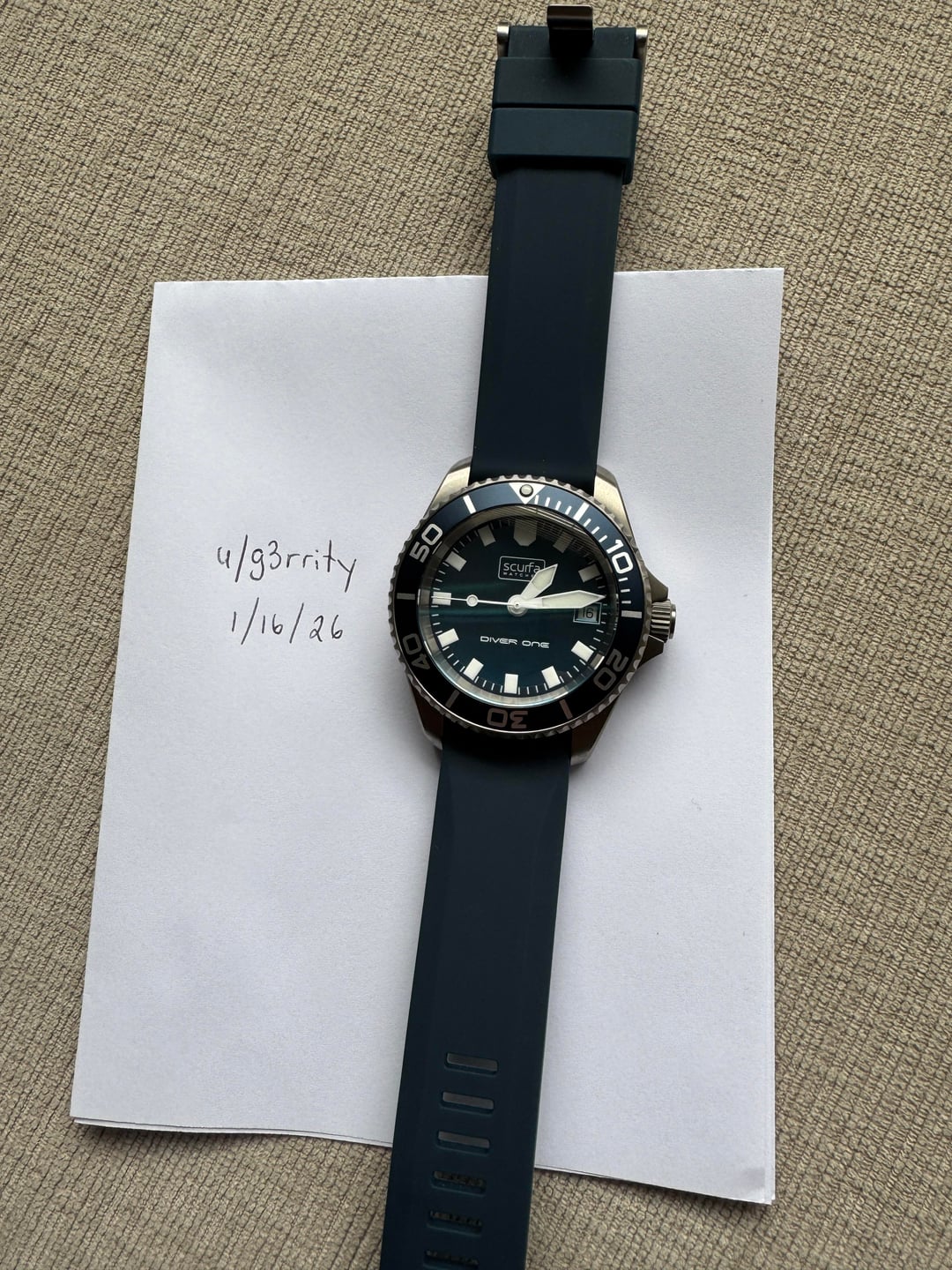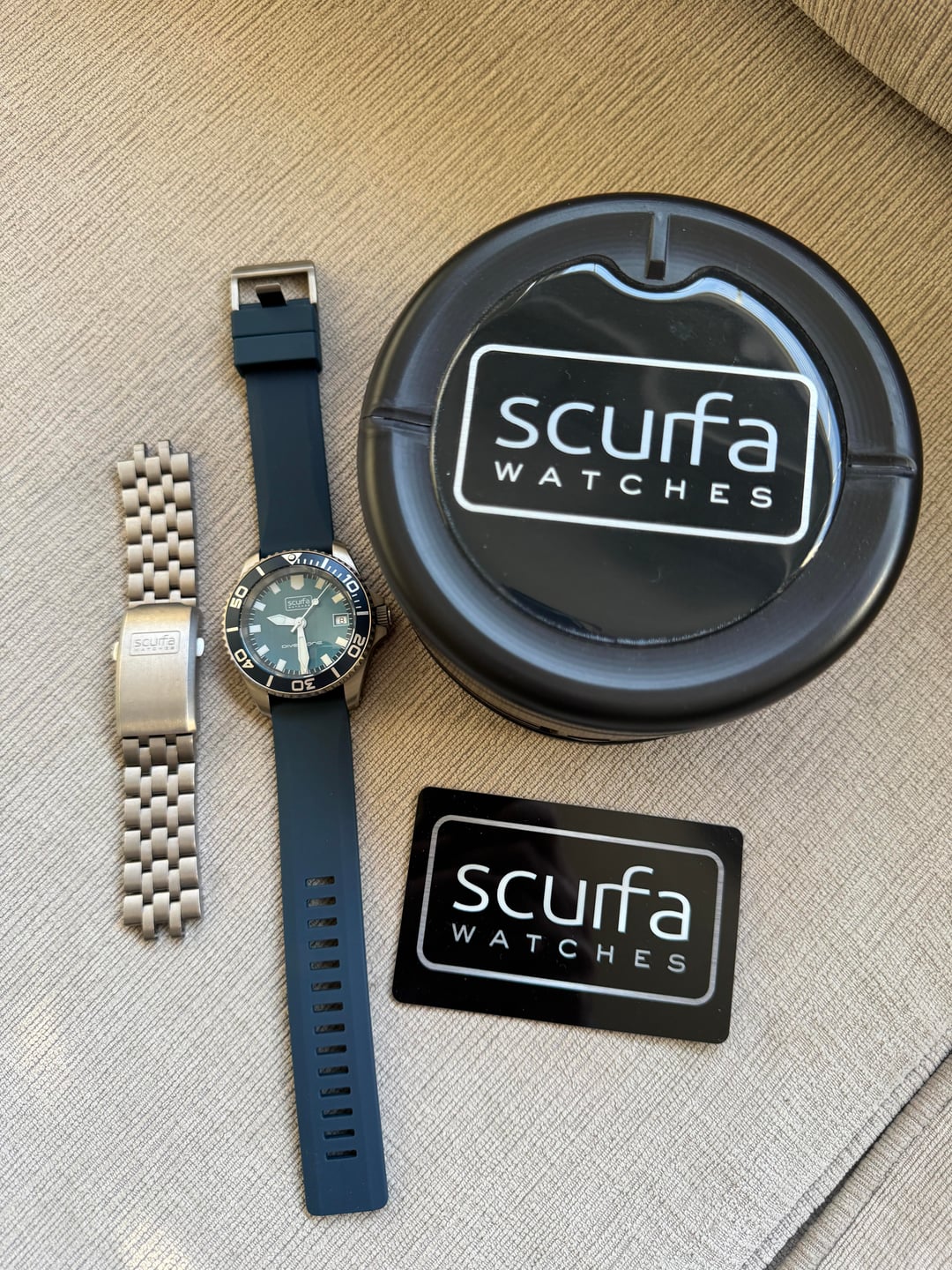 Scurfa Diver One D1-500 Titanium Proto Dial Blue **Price**: $390 shipped CONUS **Condition:** Excellent **Payment:** Venmo, PayPal (buyer pays fees if G&S), Zelle **Included in sale****:** Full set with box, papers, and warranty card dated 2/25 from Scurfa. Watch comes on OEM Scurfa blue rubber strap (unworn) and also includes Scurfa’s titanium bracelet that matches the watch. Bracelet sized to 6.5 inch wrist but includes all links. Your chance to own a Diver One without waiting weeks or months for a day to spend refreshing the website only to still not get one! These are popular and sell out quickly for very good reason. I’m only selling this to free up funds for another watch. (“Downsizing” for the new year.) **No trades** at this time please. Thanks for looking! Imgur album with timestamp photo: [https://imgur.com/a/R1N4g6M](https://imgur.com/a/R1N4g6M) Specs: **Case Size** Diameter: 40mm Length: 47.7mm Thickness: 14.4mm Strap Size: 20mm **Case Material** T2 Titanium with brushed finish **Bezel** 120 click unidirectional T2 titanium bezel. Ceramic bezel insert with luminous markers **Depth Rating** 500m \~ 1640ft **Crystal** Domed sapphire crystal with blue anti reflective coating on the underside **Movement** Features an ETA F06.412 brass 3 jewel Swiss made movement with HeavyDrive anti-shock & PreciDrive thermo-compensating precision, longer battery life and an EOL indicator **Lume** Grade A Super Luminova BGW9 on the dial, hands and bezel, (glows blue) **Bezel** 120 click unidirectional T2 titanium bezel. Ceramic bezel insert with luminous markers