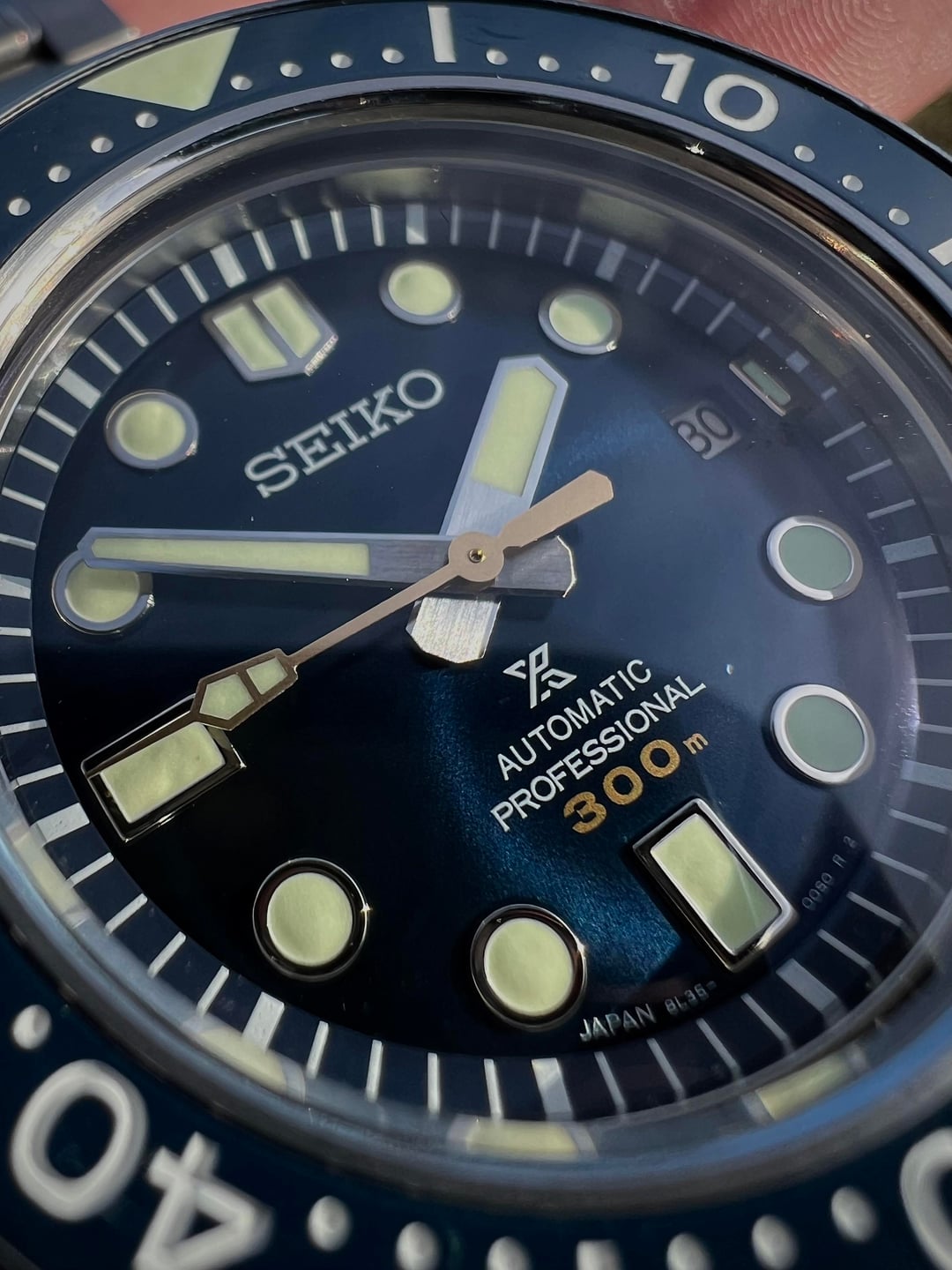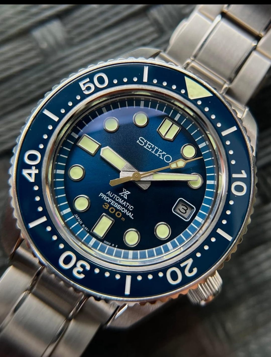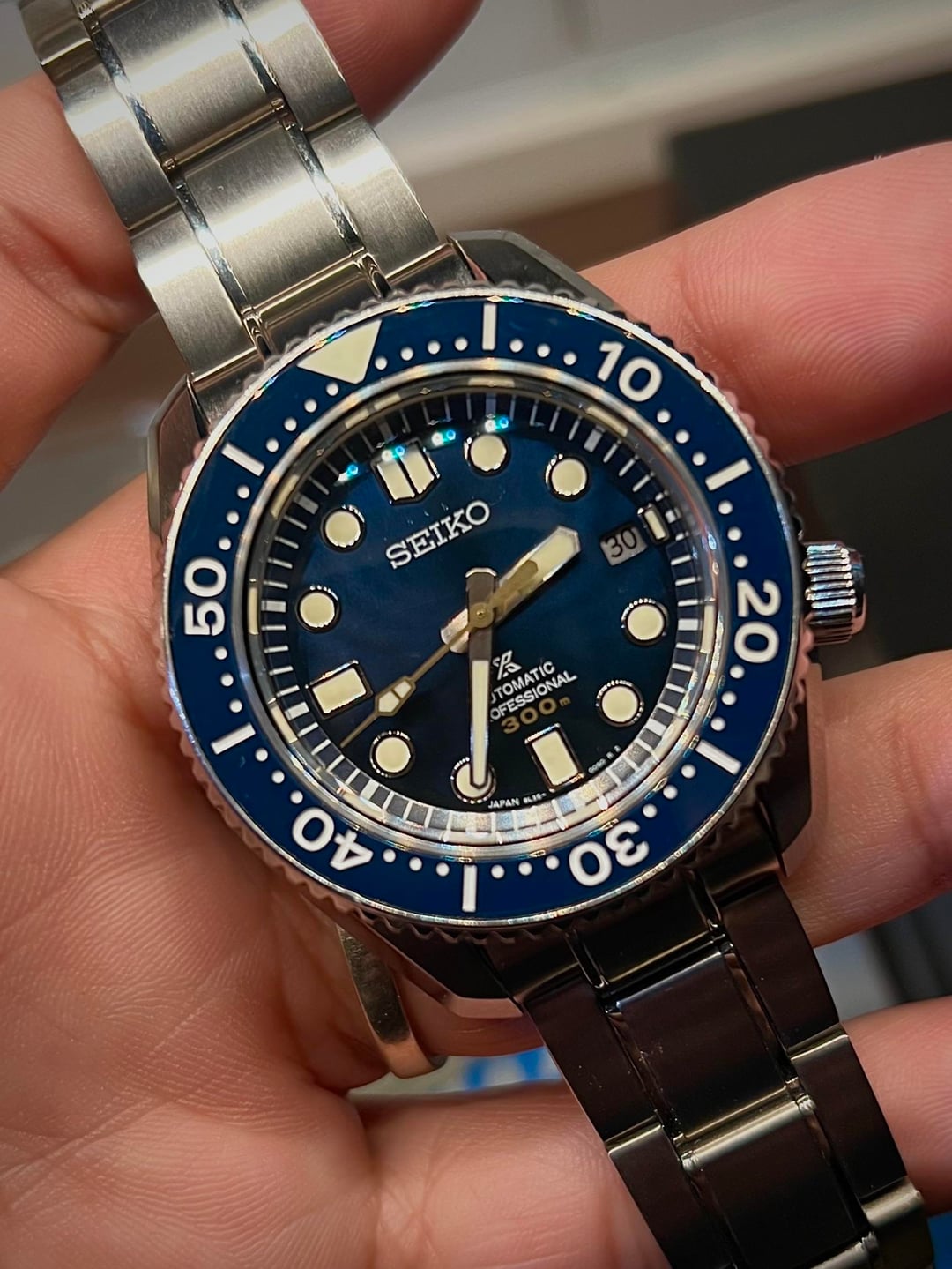 Letting go of an absolute Seiko icon – the SLA023, aka the modern MarineMaster 300. If you know, you know. This is Seiko at its peak: Zaratsu-polished case, sapphire crystal, 300m water resistance, and the in house 8L35 movement (a close cousin of a Grand Seiko caliber). The dial is a deep, inky blue that shifts beautifully in different light, paired with the sharp hands and markers that glow like a torch with Seiko’s unbeatable LumiBrite. Seriously, this thing is crazy bright! Wears beautifully on wrist and much smaller than 44mm due short and curved lugs, case design and dial-to-bezel ratio. See album for wrist shot (7” wrists for reference) See below for all specs: • 44mm case • 50mm lug to lug • 15mm thick • 300m water resistant • 8L35 Caliber (GS base movement) • 50 hour power reserve • Dual-curved sapphire, AR coated • Micro diver extension bracelet • Beautiful brushed steel date wheel Watch is in great condition with some light scratches on case and very minimal on bracelet. Comes with full kit dated 08/2022. Timekeeping is also looking great at +4 spd (see link below for time graph data). This masterpiece retailed for $3.1k, pricing to sell today at $1700 shipped CONUS, no trades on this one please, feel free to reach out with any questions or requests, thanks for looking! Time graph data: https://imgur.com/a/QepD5rd