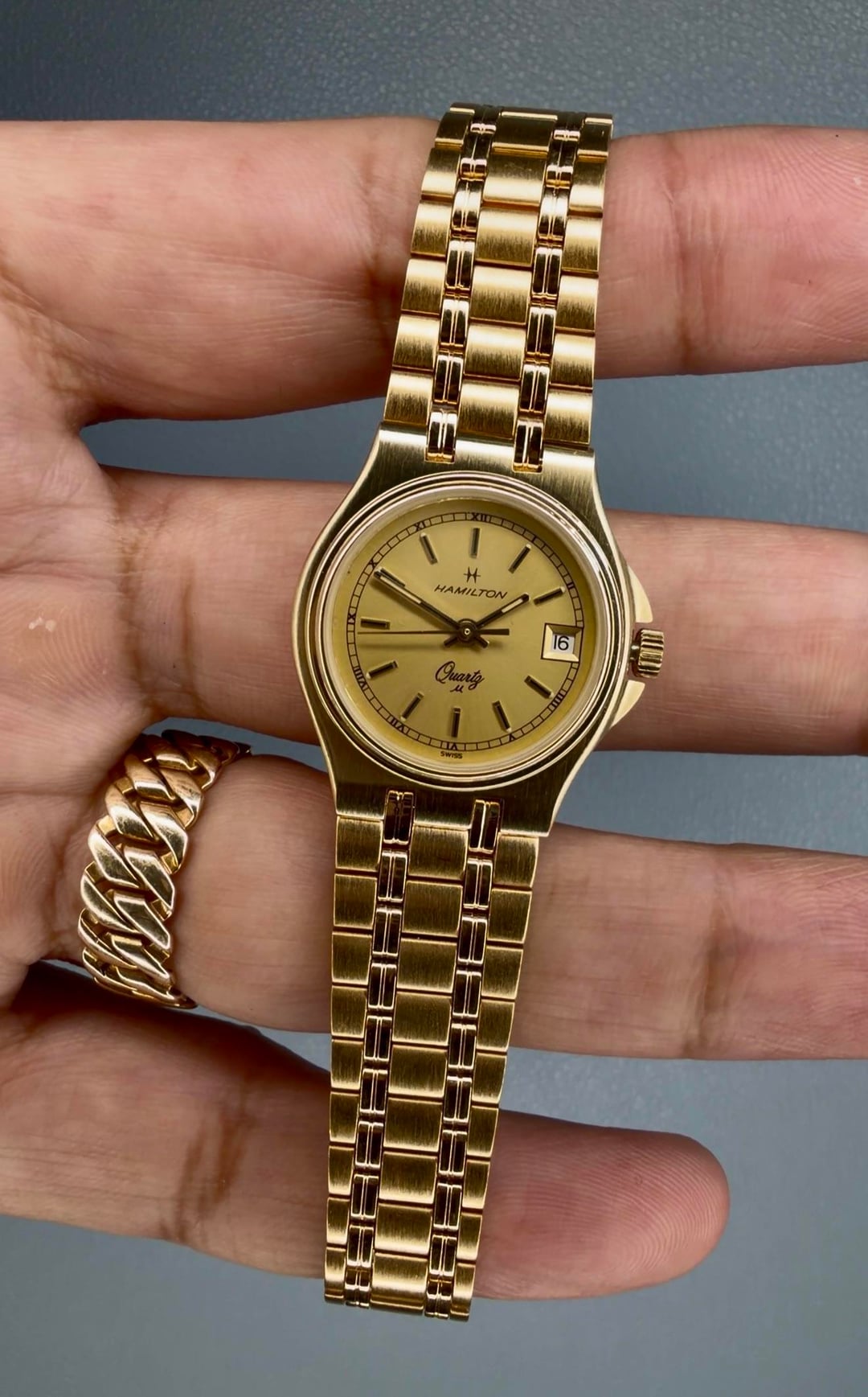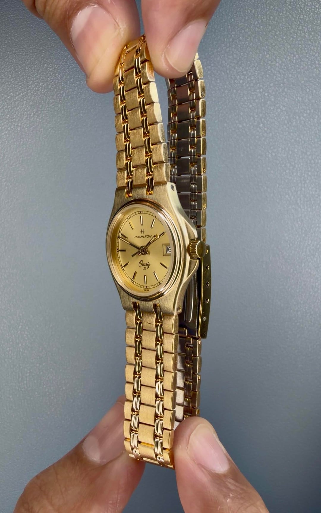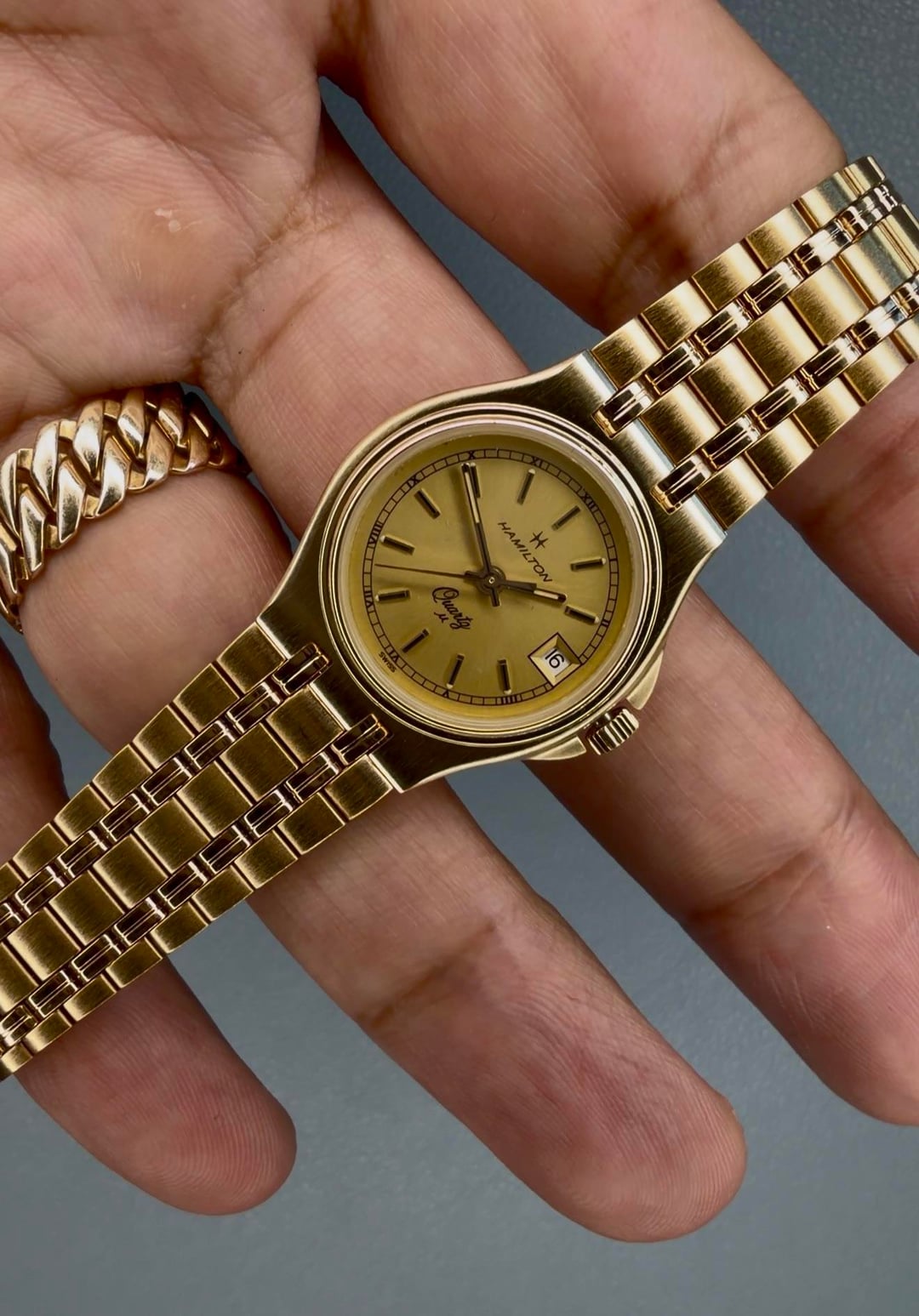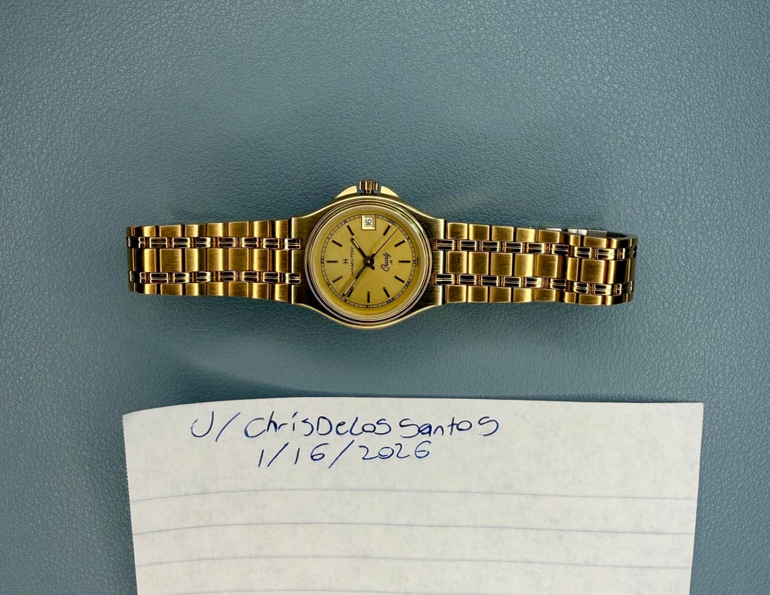Ladies Hamilton Masterpiece - New old stock - $147 -Details: An absolutely beautiful ladies Masterpiece in gold! New old stock! Has a tight clasp, but with use should losen up over time. This makes a great gift for that special lady in your life, or for any lady looking to elevate their style! -$147 Shipped -Includes shipping (US). I accept Venmo, Zelle, CashApp, and PayPal (+4% if using G&S) -Case size: 23mm, 25mm with crown guard -Movement: Quartz -Timestamp: https://imgur.com/a/vpiBsVA -Location: Downtown Los Angeles -IG: @ColeccionDeLosSantos -TikTok: Chris.DeLosSantos