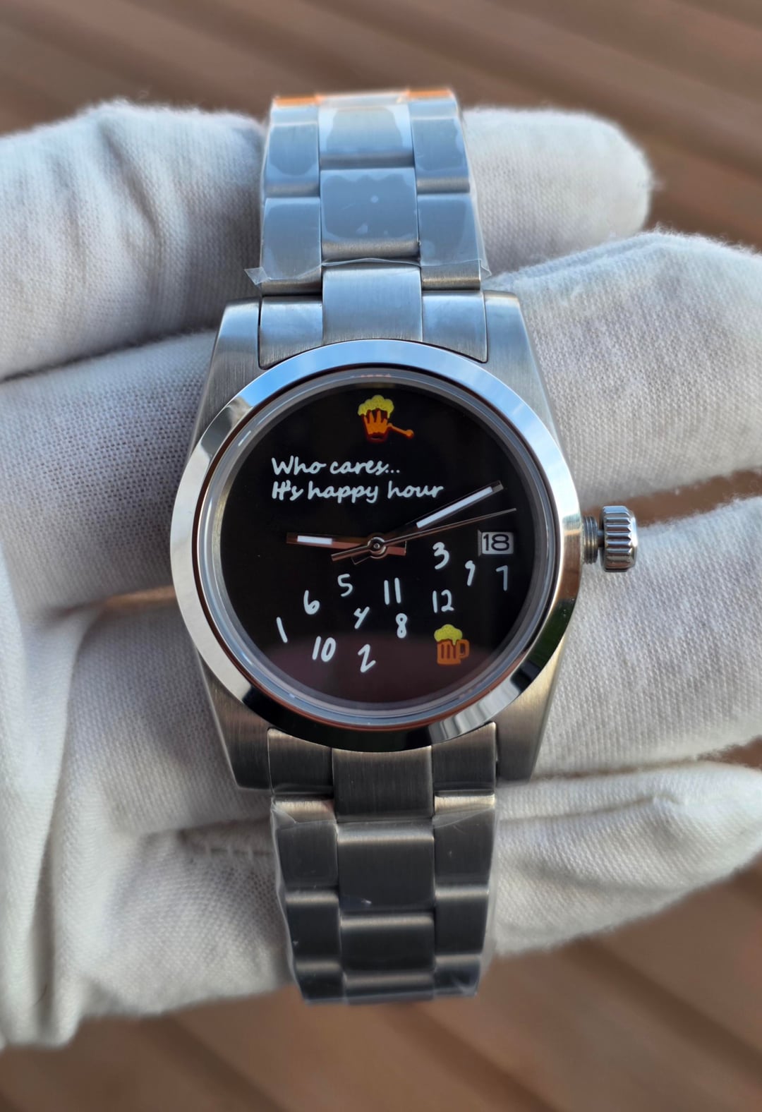 ![[WTS] New "Who cares, it's happy hour" NH35 Automatic w/ Signed Crown and Clasp (36mm) 7](https://cdn-cf.watchpatrol.net/600x600/img/full/48865c050d1335f1de70dd6fe4567a874194fca8.jpg)
