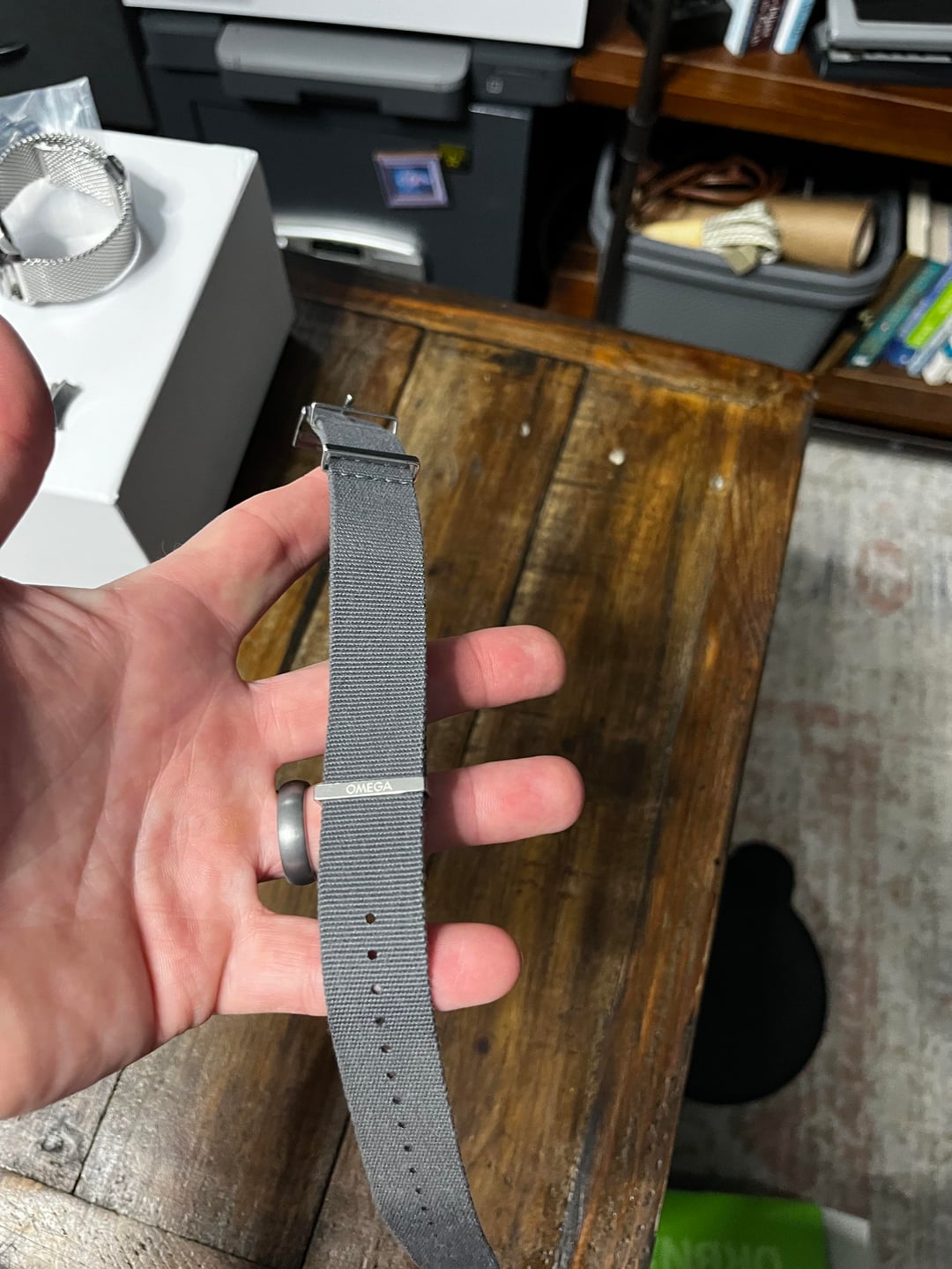 Selling a like new Omega OEM nato strap in the color grey; 21mm. Asking 99 shipped (US) Zelle or PPFF - let me know if you have any questions .
