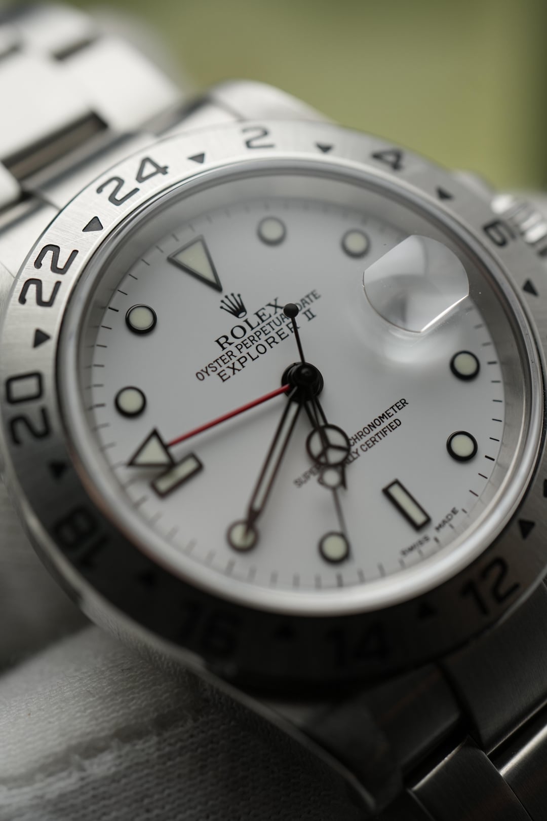 | Rolex Explorer II Stainless Steel 16570 White Dial Oyster SEL Band 40mm Watch luxuriantwatchconcierge (887) |