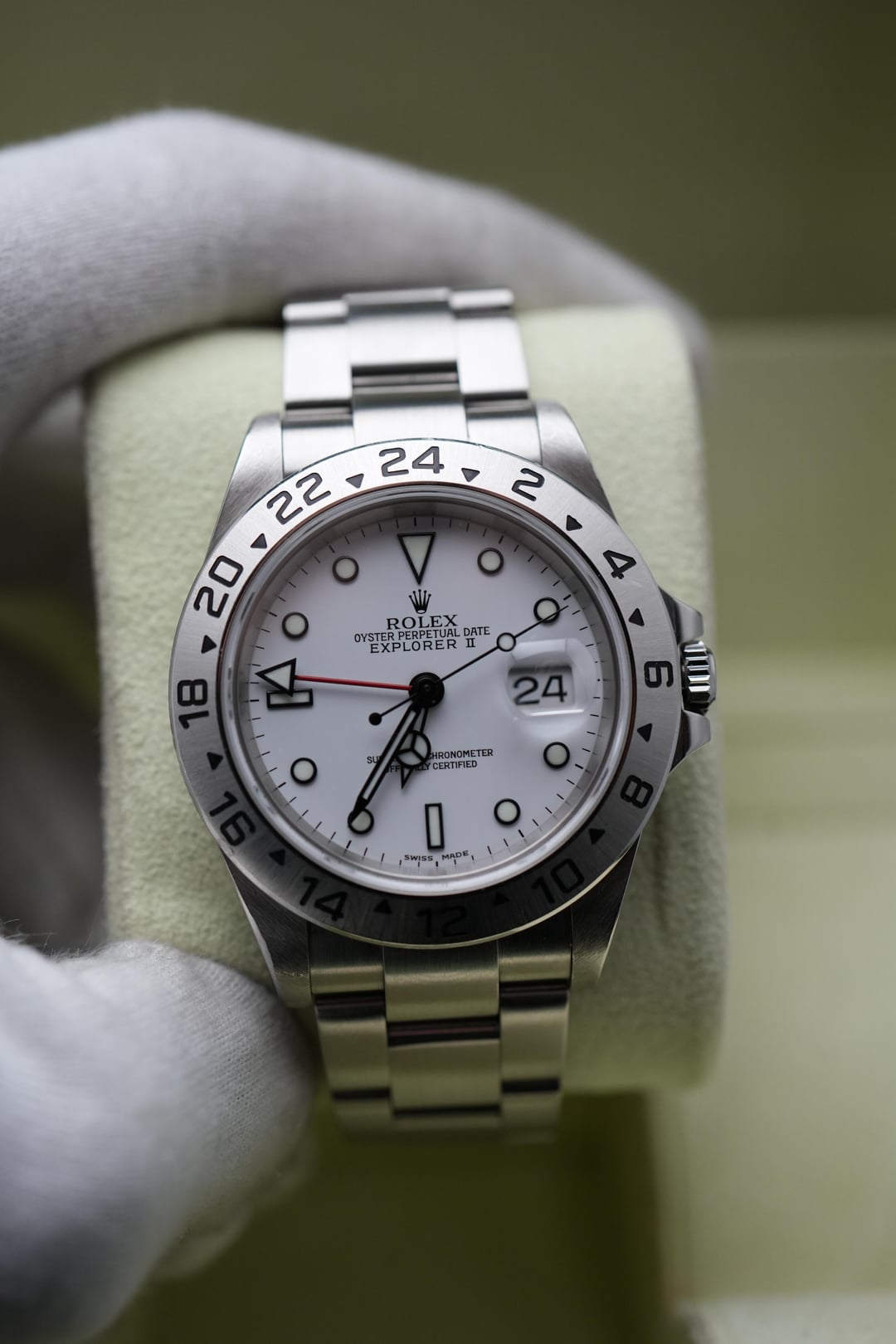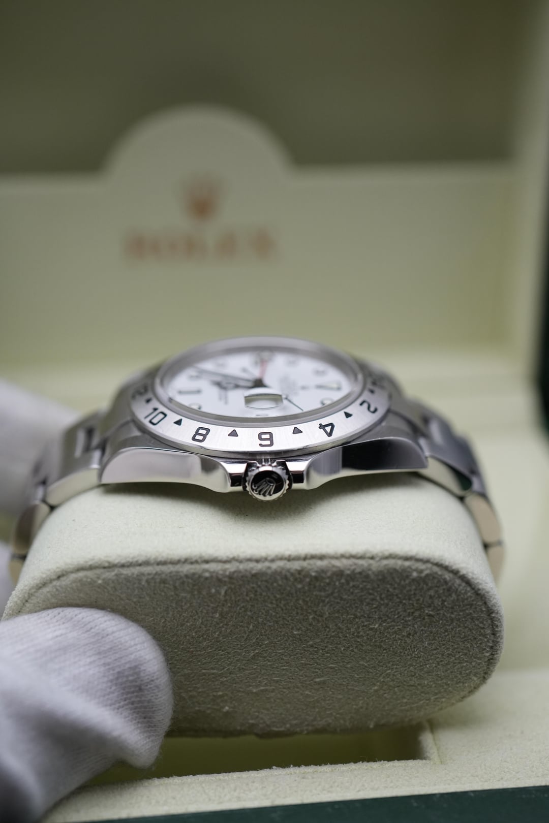 | Undated Rolex Explorer II Polar White Steel Oyster 40mm Watch 16570 Box Papers elegantswiss (1172) |