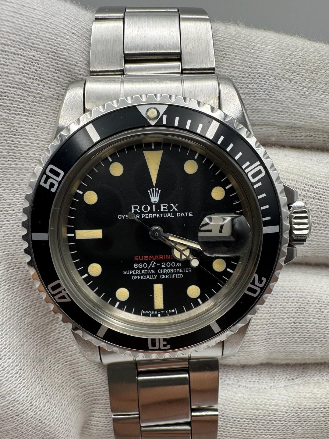 This exceptional Rolex Submariner Ref. 1680 “Red Submariner” is presented in outstanding all-original condition, representing one of the most sought-after references in vintage Rolex collecting. The stainless steel case retains very thick, sharp lugs and appears to remain unpolished, with well-defined factory bevels preserved throughout. The iconic red “Submariner” dial is in pristine condition, displaying an even, warm yellow patina across all tritium hour markers, perfectly matched by the original tritium hands. The original bezel insert is equally impressive, showing excellent preservation with a matching pearl pip that completes the classic look. Fitted with its original folded-link Oyster bracelet with 11 links, the bracelet shows only normal, honest stretch, a notable detail for a watch of this age. The movement has been tested and is running properly, ensuring dependable performance. All case engravings are crisp and fully intact, with a 2.5 million serial number dating the watch to approximately 1969. Accompanied by its original box and papers, and recently acquired directly from the original family, this Red Submariner stands as a rare and highly collectible example, distinguished by its originality, condition, and provenance. **Reference:** 1680 **Size:** 40mm **Year:** 1968 📜 Includes: Original box & papers 💵 Price: $27,000 + FREE overnight shipping with FedEx fully insured. [Timestamp](https://imgur.com/a/CP5eRPH) 🔗 Other Listings: [profile](https://www.reddit.com/u/BoghossianJewelry/s/vm81HAdB7o) | [watchrecon](https://www.watchrecon.com/?query=BoghossianJewelry&last_days=0) 🔥 Follow us on [Instagram](https://www.instagram.com/bogossiajewelers) 📍 Location: New York 🔒 Authenticity: 100% guaranteed, buy with confidence. We have 160+ reviews on Chrono24 with 180+ transactions, and Excellent rating score on Trustpilot. Visit our [profile](https://www.reddit.com/u/BoghossianJewelry/s/vm81HAdB7o) for links and references. 📦 Domestic Shipping: Ships with FedEx overnight, within 24 business hours of payment, from New York, NY to CONUS. The shipment is fully insured against damage, loss or theft. 🌍 International Shipping: Incurs an additional $100. 💳 Payment: Crypto (+2%), PayPal/CC (+4%), Web, or Face-to-face deal in NY. 🔐 [Seller References](https://bogossia.com/authenticity) 📸 [IG: @bogossiajewelers](https://www.instagram.com/bogossiajewelers)