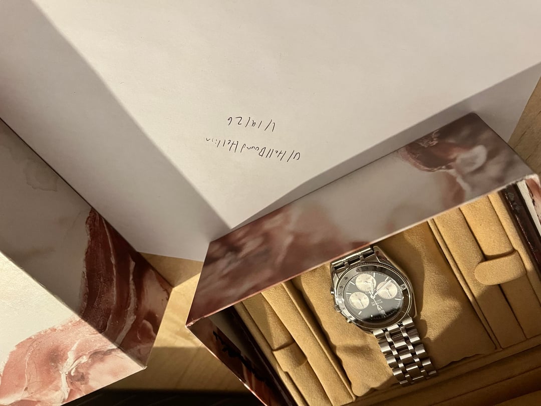Hi r/watchexchange! Selling a Tudor Monarch 15900 chronograph with boxes, papers, manuals, red Tudor “wax seal” hang tag. The watch has gorgeous champagne subdials, and some minor scratches throughout, as pictured. Can be polished out easily if need be. Perfect fit at 37mm-38mm wide, 20mm wide bracelet, 10mm thick. Papers date the watch to 2002. Nice smooth chrono seconds sweep from the mecha quartz, ticking seconds at 6pm subdial. Watch shown on an 8-1/4” wrist. I have another original Tudor bracelet for the watch as well, that I had sourced to purchase more links that I will include with this sale. Feel free to reach out with any questions or requests. Asking $2,599 for the full kit shipped insured in the USA, OBO! Trades welcome. Thanks for looking!