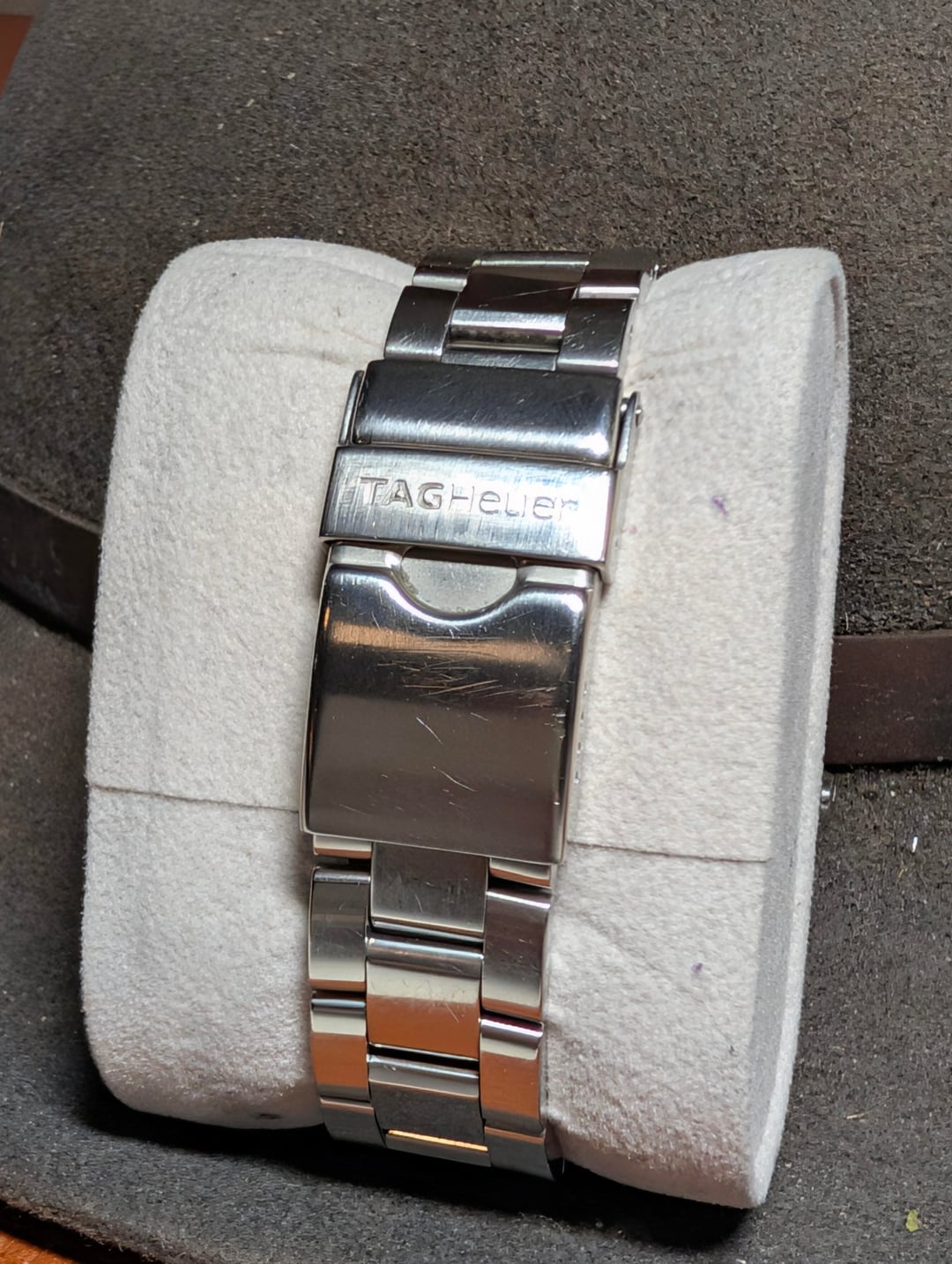 Timestamp: [https://trugrowth.notion.site/TAG-Heuer-Aquaracer-WAF2010-2baacf6eb95580568693cdd57c800a2d?source=copy\_link](https://trugrowth.notion.site/TAG-Heuer-Aquaracer-WAF2010-2baacf6eb95580568693cdd57c800a2d?source=copy_link) For sale is a TAG Heuer Aquaracer WAF2010 on the original bracelet. This is a great example of the earlier Aquaracer era: clean, purpose-built, and very wearable, with the very useful day-date layout and a proven Calibre 5 automatic. Highlights: 41mm case and approximately 11mm thick, 300m water resistance with screw-down crown, Swiss automatic Calibre 5 (ETA 2834-2 base) at 28,800 bph, sapphire crystal, and the classic Aquaracer bezel and bracelet design from the period. Condition: Excellent overall. Crystal is clean. Case and bracelet show light, honest wear consistent with careful use. Included: Watch on original steel bracelet, sized for a 7.5" wrist, two additional links, and insured 2-day shipping (CONUS). Specs: Reference WAF2010.BA0818. Stainless steel case, 41mm. Thickness approximately 11mm. Sapphire crystal. TAG Heuer Calibre 5 automatic, day-date. 300m water resistance. Black dial with luminous indices and hands. Price: $750 shipped and insured (CONUS). Payment: Zelle, wire, or crypto. DM with questions or for additional photos.