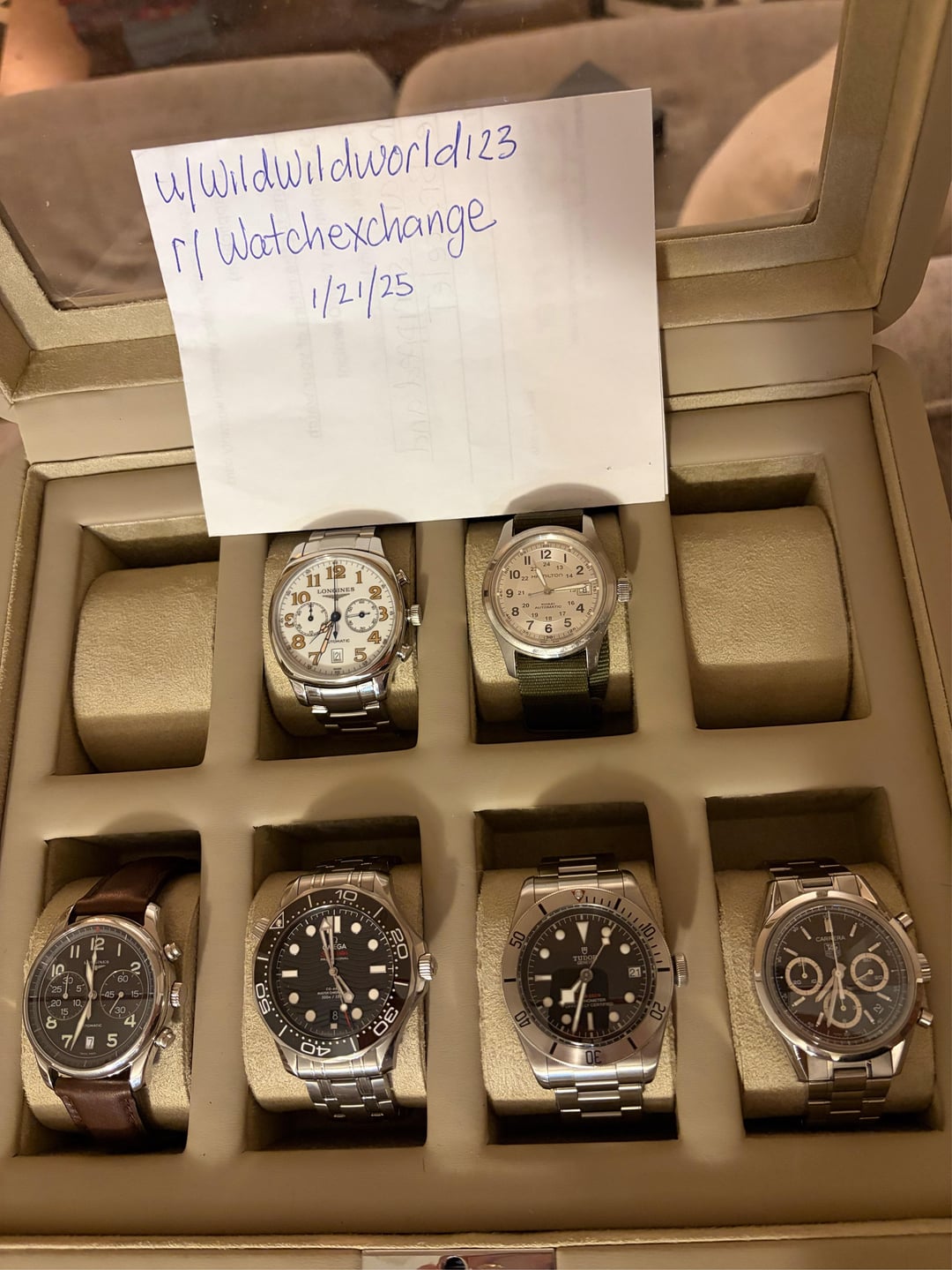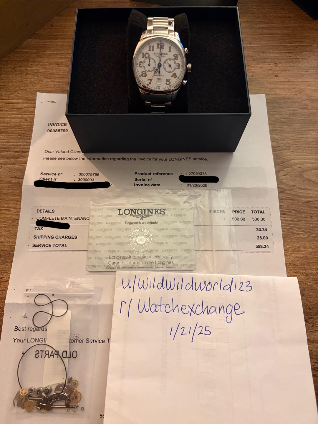 2 Longines Chronographs for sale. The 40mm white dial reference L2054236 just received a complete maintenance service from Longines which cost $558. I just got the watch back today and it comes with the spare parts, service box, extra links and warranty card. (Box and papers) It’s in amazing shape for a neo-vintage and comes with enough links to fit an 8 inch wrist. $1500 +shipping The 40mm black dial reference L26294 is running strong and keeping great time. I was told it was serviced not long before I bought it last year. It comes with an OEM leather strap and a master collection steel bracelet I bought directly from swatch group for $400. I have the receipt for that as well. This watch will fit an 8 inch wrist on leather or steel and comes as “watch only” $1400 +shipping I have some experience buying, selling and shipping watches. My account is newer, so I’m willing to do a FaceTime or whatever it takes to make buyer comfortable. I will ship FedEx “hold at location” and will require a picture of your ID. I will also share a picture of mine. I accept Zelle, cash app, PayPal F&F and G&S(+4.5%) If you’d like to meet in person I’m located in southern CT.