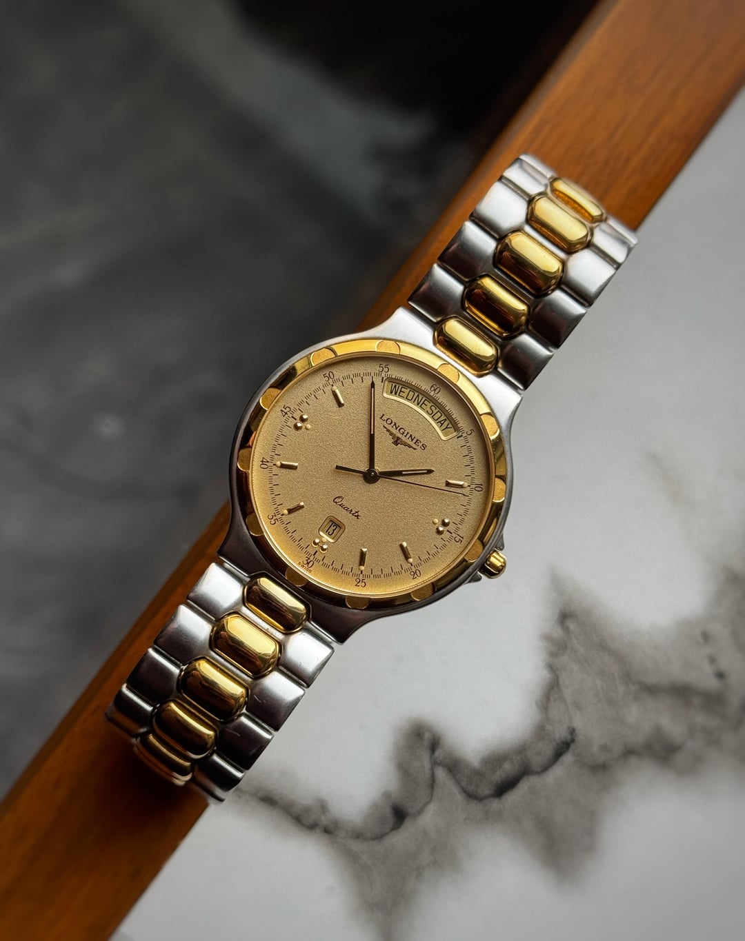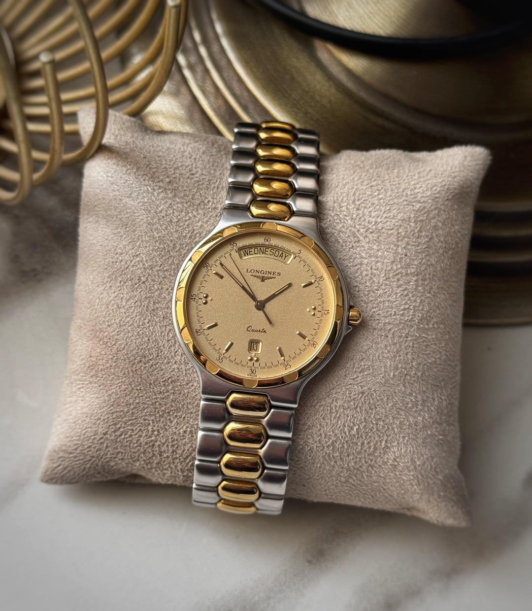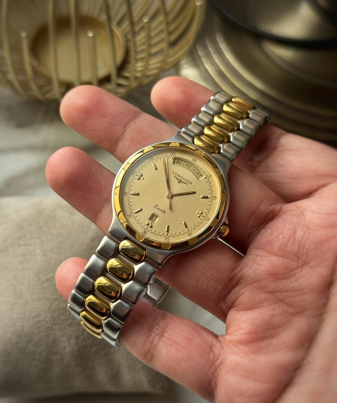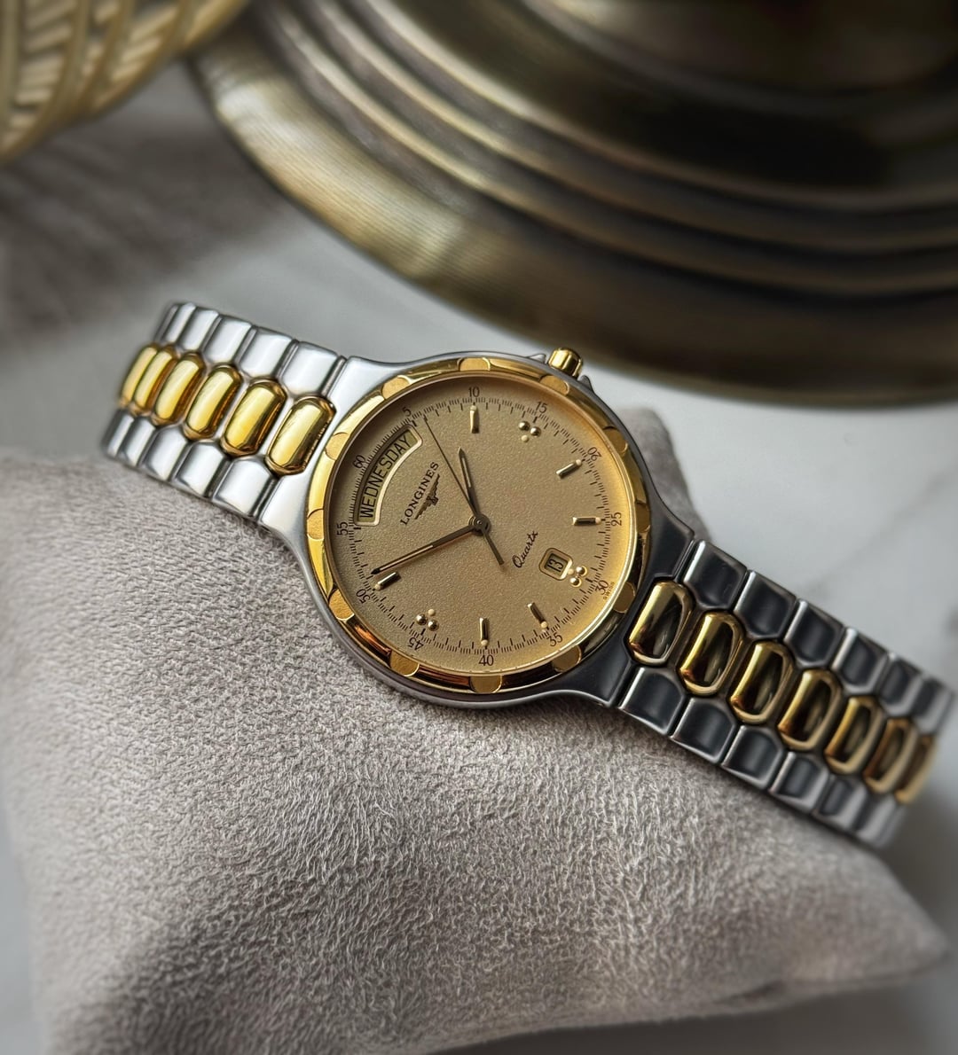 [WTS] Longines Conquest Day-Date Stardust Dial, MINT L1.615.3 only for 325$ Shipped🚢 Up for sale is a longines conquest day date reference L1.615.3 featuring a stainless steel/gold plated case with a case size of 34mm approximately. Condition of the case is mint no major dents or dings just a few hairline scratches overall. Dial is clean with a beautiful stardust texture with no signs of aging. Original crown and crystal. Comes on its original bracelet which is 8 inches in length. Quartz movement working perfectly fine with no malfunctions and keeping accurate time as it should. Watch only! Asking 325$ shipped via UPS (US Tarrif covered) payment through Wise/Paypal F&F/crypto Will be shipped in 2-3 days.