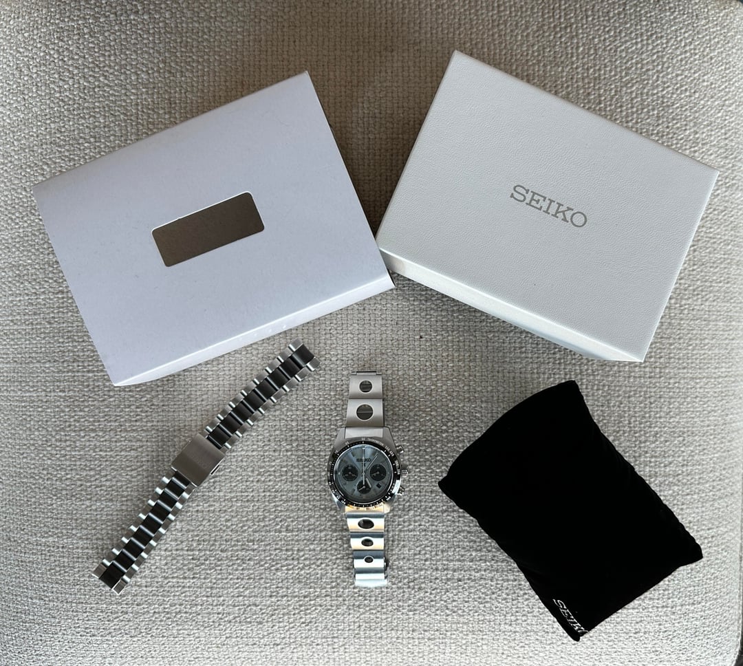 Hey folks, Clearing out a few wrist pieces at the beginning of the year. Love these (check for my other listings) but just don’t wear them much. This one is a Seiko Prospex Speedtimer SSC909, in Pale Transparent Blue. It is a “limited edition”, but at 10,000 units, I’m not sure how limited it actually is. Very fun watch, though. The case has one tiny blemish on the lower right front region. I have tried to capture this in the photos. It is visible from very close up, but is not noticeable, even with knowledge of it, from normal wear distance. Bought new, and fully kitted. It also comes with (shown in pics) a Strapcode Rollball V2, which I find lends a very cool, little bit punkrock, little bit cyberpunk feel to it. It is resized to 6.5”, but the additional links (not pictured) are included. There are some minor blemishes on this bracelet. I have tried to show these well in the linked photos. The factory bracelet does have the plastic removed, but is not resized and other than to view the watch when first received, has never been worn. It is blemish free. If you need more photos or a video, happy to provide what you're looking for as quickly as I am able to. **Asking $450**. Price includes tracked shipping. Usually USPS priority mail, but sometimes UPS. **I accept PayPal**, and should have enough feedback here now that hopefully there is some level of trust. But happy to hop on Facetime or another similar service to talk personally if needed. **Please post a reply here first before chatting**, if you would be so kind. Fire away if you have questions. Additional Photos: [https://imgur.com/a/IUoBoPs](https://imgur.com/a/IUoBoPs) Time Stamp: [https://imgur.com/HhGz3uX](https://imgur.com/HhGz3uX) Brand Link: [https://www.seikowatches.com/us-en/products/prospex/ssc909](https://www.seikowatches.com/us-en/products/prospex/ssc909)