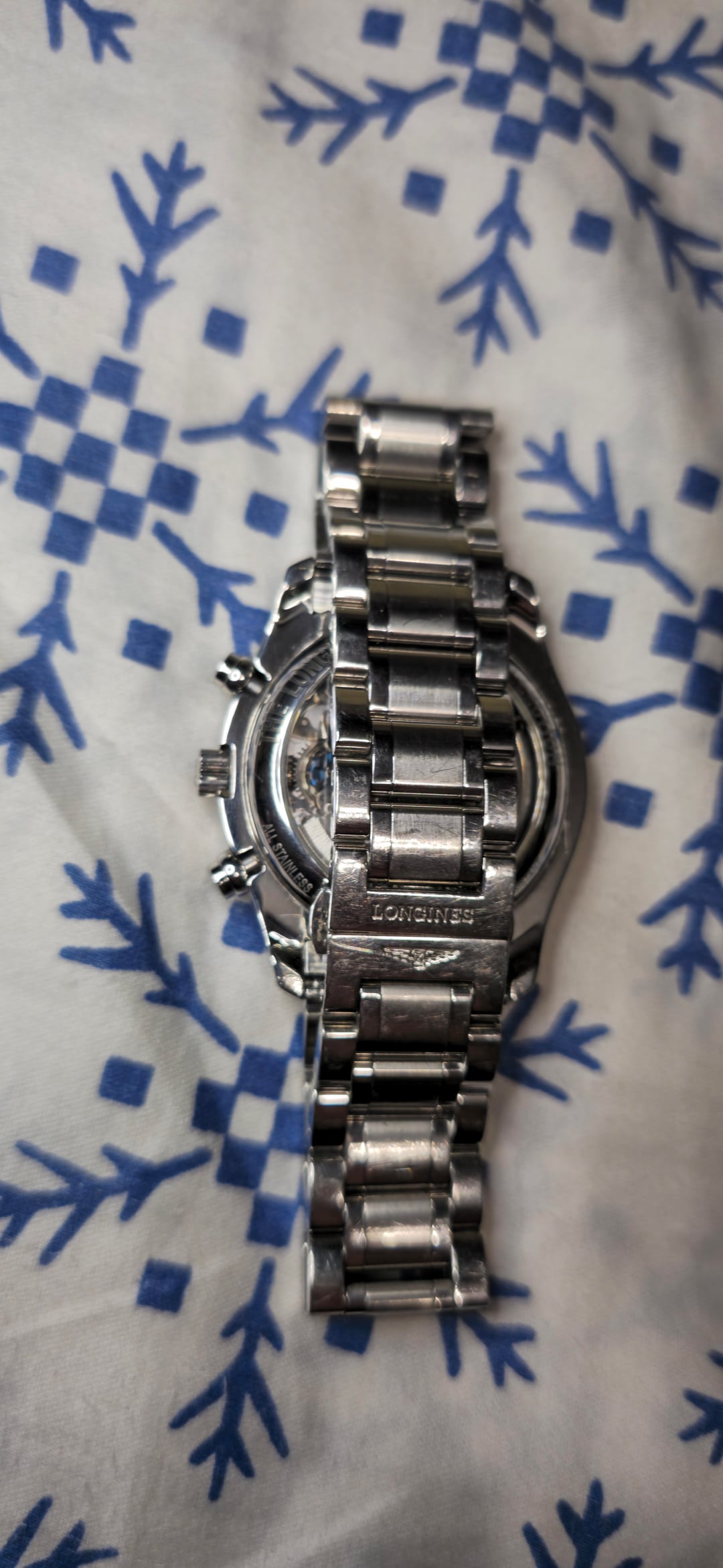 This is the Longines Master Collection Moonphase Chronograph L2.673.4.78.6 . This watch is the 40mm version and also features a Column Wheel. It also includes the Box and Papers and all authentication for the watch. I bought the watch on Ebay a fair bit ago and enjoyed wearing it. As seen it definitely has some wear and use. However, new watches have caught my eye and unfortunately my collection is getting larger, so I'm selling this watch. Service is somewhat unknown, though the previous owner said he had serviced it before selling it to me. Not entirely sure if true, but will still include that in this listing. Watch of course works and has no issues and keeps time well. As seen in the images and Timestamp, the watch comes with the Ebay authentication, and will send it with the watch. The watch again is pretty well used and has some scratches and scuffs, though polishing will make it look much better. The box and papers are here too however the box is slight damaged, one of the flaps is falling off and taped. The display box has only scratches, and the manual has no issues. The box also has 3 more extra links for the bracelet. Will clean the bracelet and box box before sending to make sure everything is as clean as it can be. Can also set the watch for you (setting the moonphase month day and date) so all you have to do is change the time if that's something you want as well. Looking to sell the watch for $1850 + Shipping, or Best Offer. Always willing to talk as long as the offer is not too low. Looking to use PayPal only for now. More safety for the buyer and seller and willing to tank the fee as long as the price isn't too low. Will ship quickly and safely and will insure the package in case anything happen. Happy to answer any question just shoot a chat. Features Column Wheel Chronograph 12 hour Chronograph Moonphase Triple Calendar (Date, Day, Month) 24 hour hand Images: https://imgur.com/a/iPyK42Z Timestamp: https://imgur.com/a/IUbWpAr