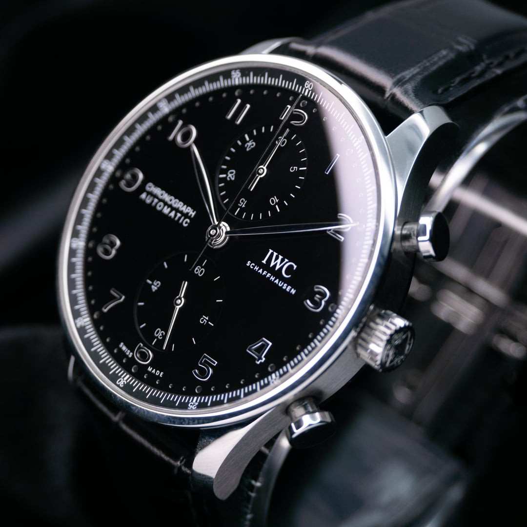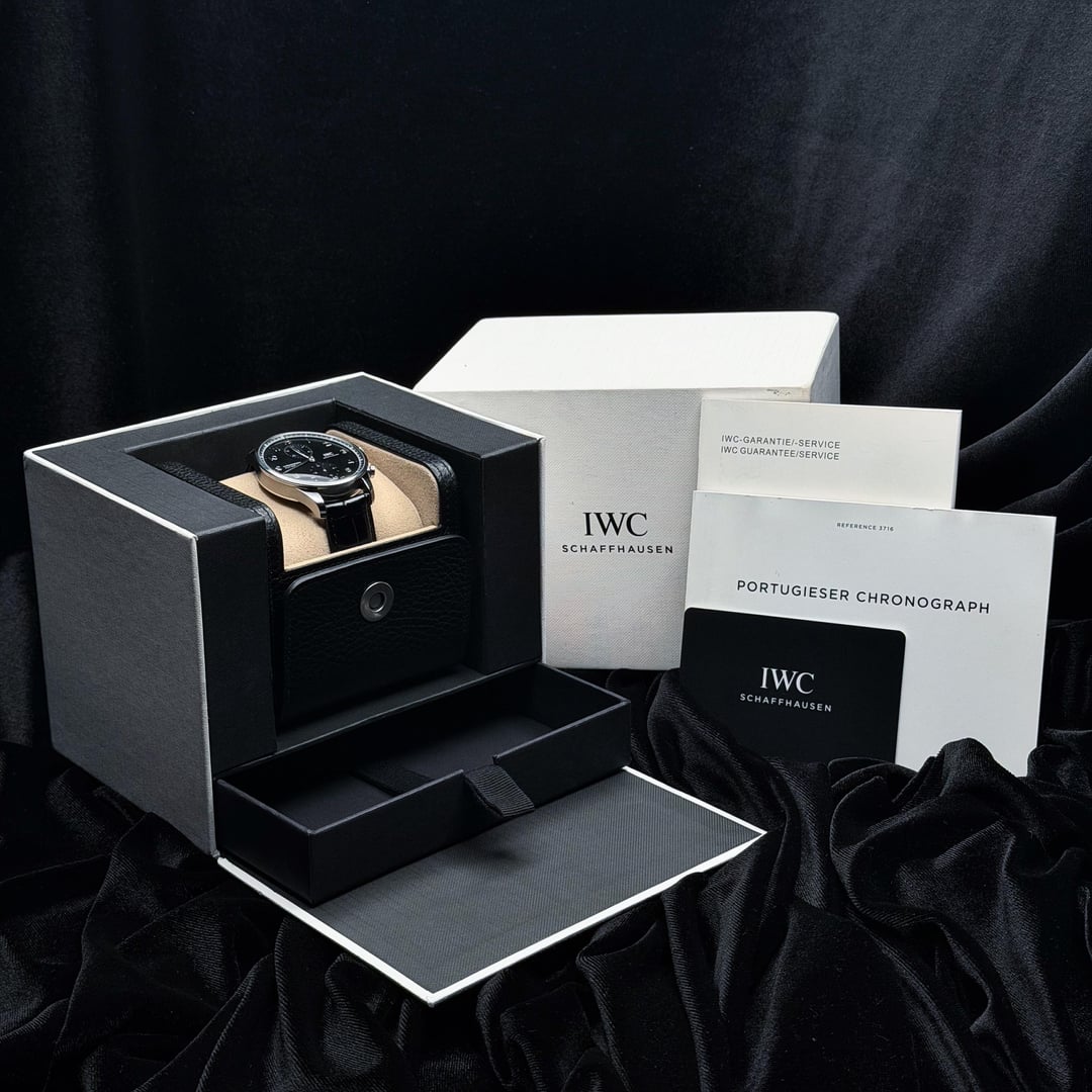 IWC Portugieser Chronograph IW371609 41mm with Extended Manufacturer Warranty, Box & Papers [Timestamp](https://imgur.com/a/oulIQn5) \- Price: $6,645 + Shipping OBO \- Insured overnight shipping from St. Petersburg, FL 📍 \- Payment: Wire, Zelle or Escrow + authentication (add $275) MSRP: $8,900 (Save \~$2,200!) Please feel free to reach out if you have any questions or need additional photos! I have many references and am always willing to jump on a video call to show you the watch. ▪️ Includes ▪️ Original inner & outer box, manual/booklets, warranty card ▪️ Description ▪️ Elegant, balanced, and unmistakably IWC, the Portugieser Chronograph IW371609 is one of the most iconic chronographs in modern watchmaking. Featuring the classic 41mm stainless steel case, this reference showcases the Portugieser’s signature clean bi-compax dial layout, offering exceptional symmetry and legibility. The black dial is accented by Arabic numerals, feuille hands, and recessed subdials at 12 and 6 o’clock, creating a refined yet purposeful aesthetic. The thin bezel and expansive dial opening give the watch a larger wrist presence while remaining elegant and versatile enough for daily wear or formal settings. \- Movement: IWC Caliber 69355, automatic chronograph, 46-hour power reserve \- Case: 41mm stainless steel, sapphire AR coated crystals, exhibition caseback \- Dial: Black, small seconds subdial, chronograph minute counter subdial \- Band: Black alligator leather, deployant clasp \- Water resistance: 3 bar/30m/100ft ▪️ Condition ▪️ The watch is in excellent pre-owned condition with very light wear consistent with gentle use. The movement runs accurately and all chronograph functions operate as intended. The movement is running accurately and does not need any servicing.