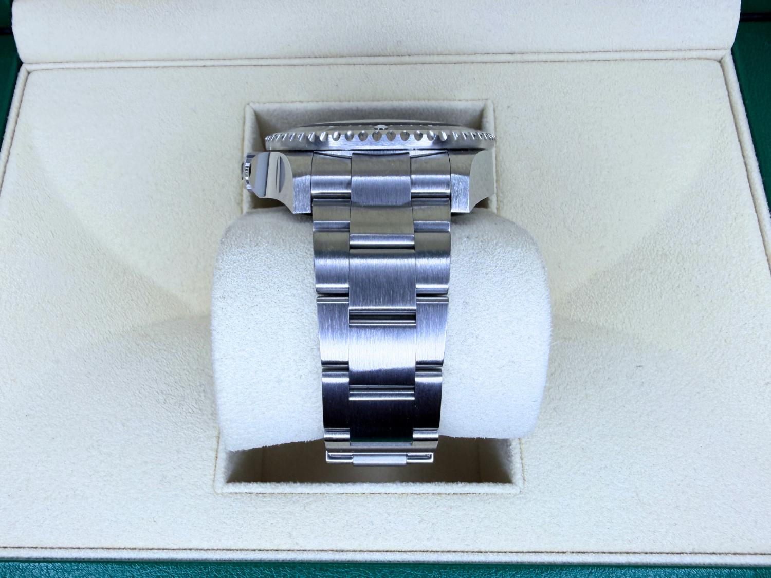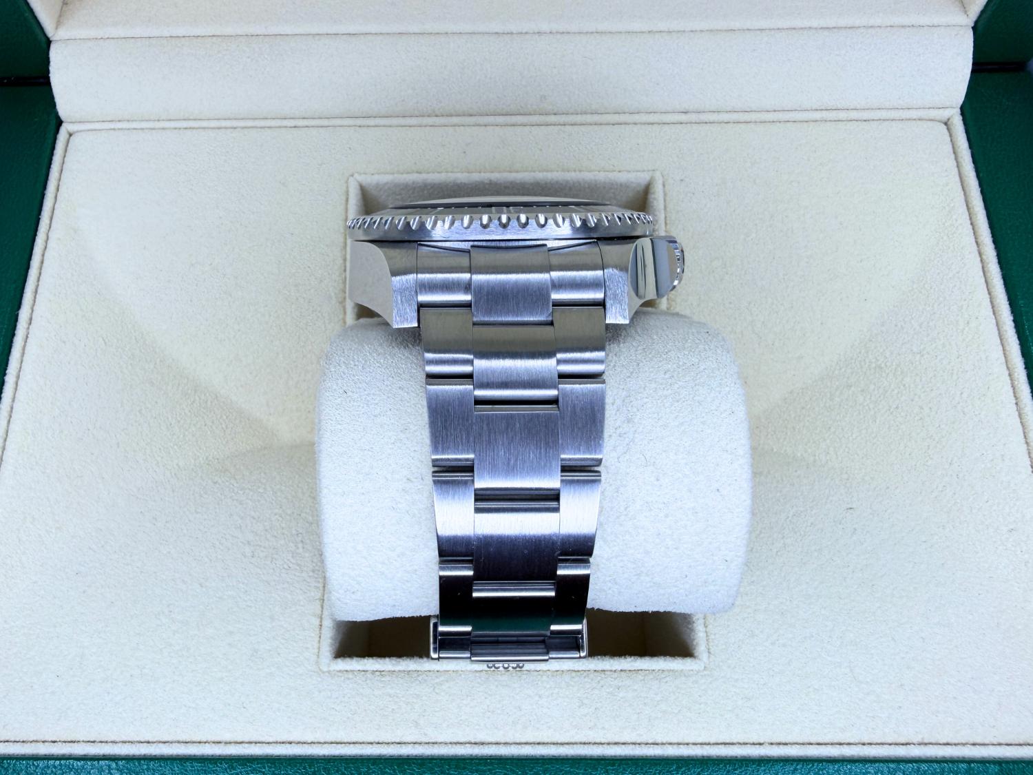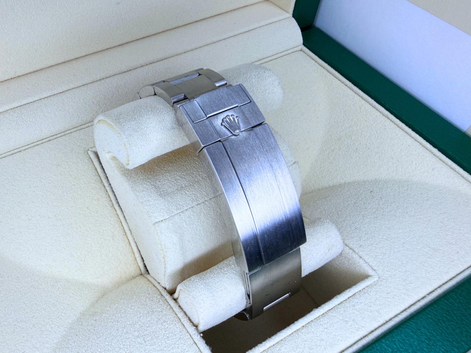 This watch comes with the following: outer beige and inner green Rolex boxes, green hang tag, white hang tag, all booklets, new style warranty card and full links. The new style warranty card is dated 11/24.