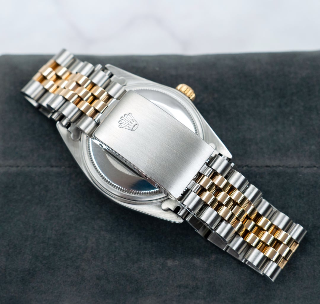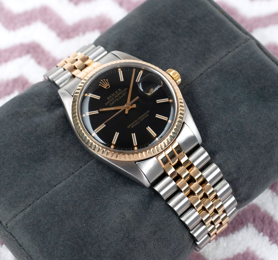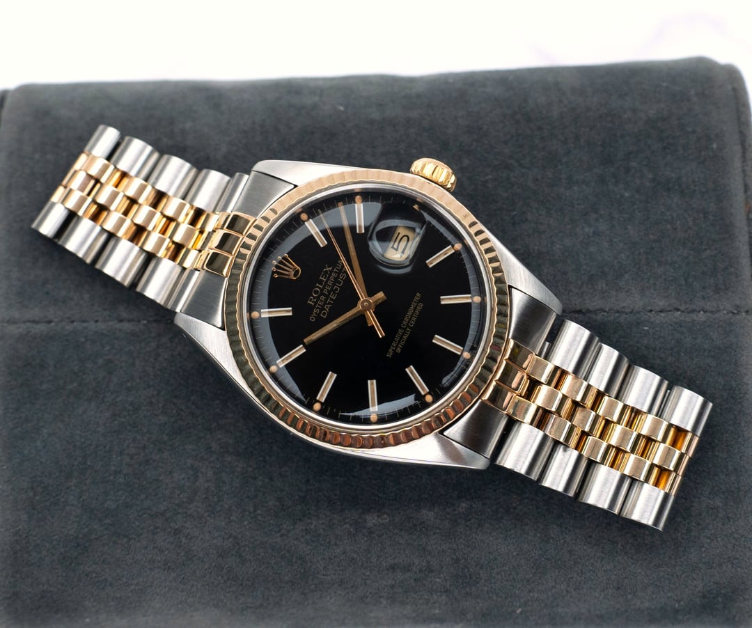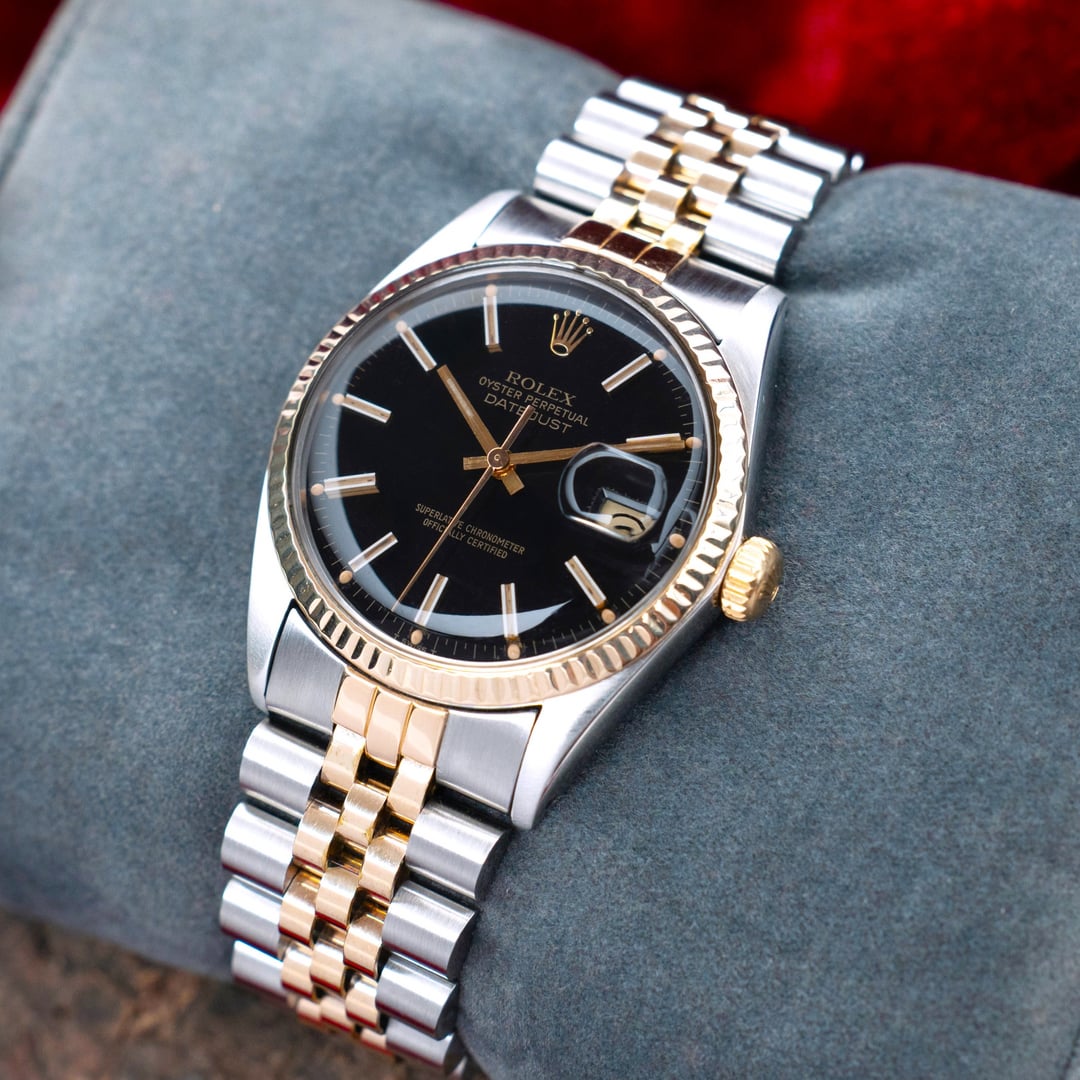 A good condition Rolex Datejust Reference 16013 with a stunning Black dial, raised baton indexes. The lume has developed to have the desirable warm yellow color. Golden fluted bezel. Movement has been serviced. Great time keeping. Amazing condition, ready to be used as a daily driver. Comes with the original Rolex signed two tone Ref-62523H Jubilee bracelet. It looks amazing in person. A good collector’s piece. Case is professionally polished keeping all the sharp brushed lines, edges and mirror finishing. Pictures don't do justice to this beauty, it should be appreciated upfront to experience at full measure. I will add two handmade straps to go with it. Overall a great piece at a good price. Check my Instagram: [https://instagram.com/hour.lust](https://instagram.com/hour.lust) PRICE: $4499 USD via Paypal, Wise, Crypto. FREE DHL 5 day shipping worldwide. Tariffs are covered by me. Considering a full service has been done to the watch, I'm asking a reasonable price. I have a good number of exchanges here for a safe transaction. * Manufacturing Year: 1981 * Reference Number: 16013 * Case size: 36 mm (without crown) * Lug to Lug size: 44 mm * Lug size: 20 mm * Thickness: 12 mm * Bracelet: 62523H signed clasp. 455B end links. Pics: [https://imgur.com/a/fN10ztN](https://imgur.com/a/fN10ztN) TS: [https://imgur.com/a/VmZOczf](https://imgur.com/a/VmZOczf)
