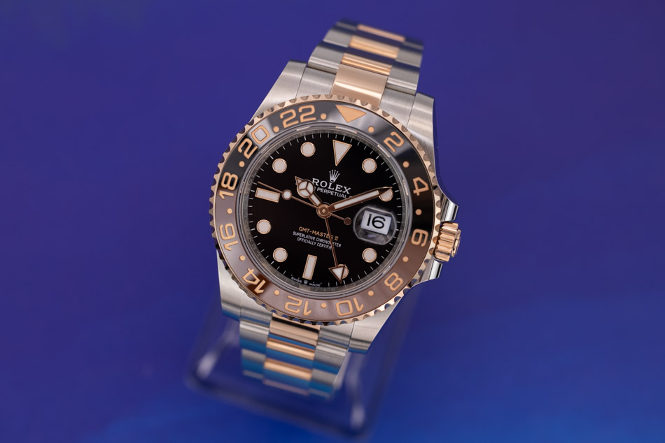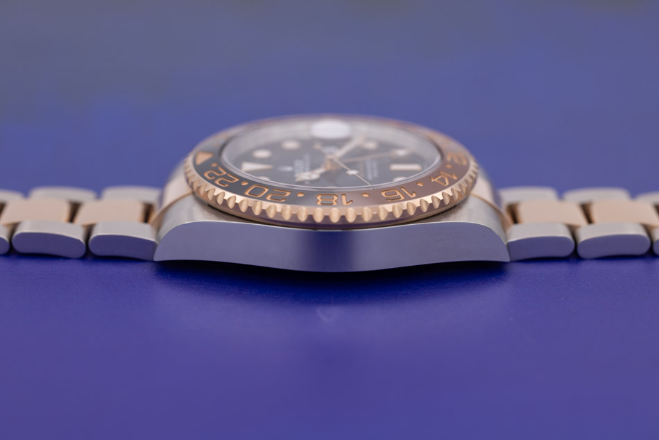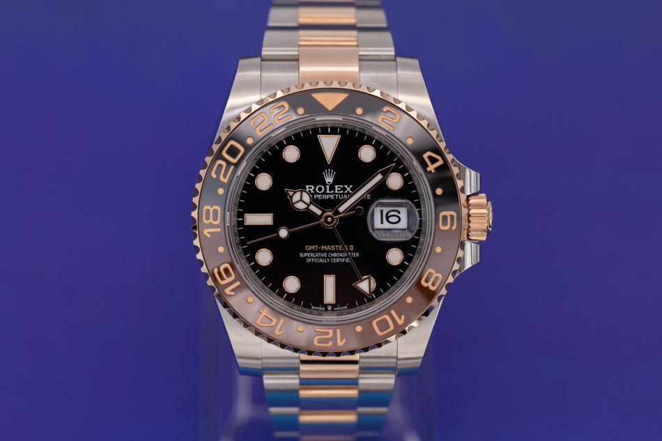 Notes: A modern GMT icon; warm Everose gold against the black/brown Cerachrom bezel. Unworn example with full set accessories.