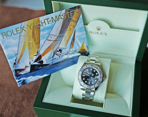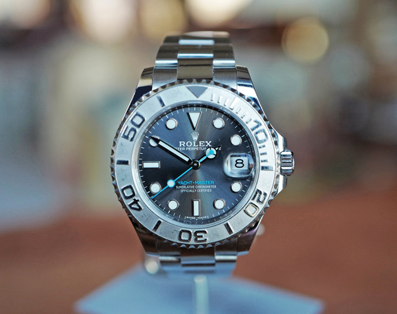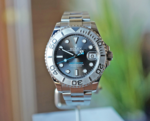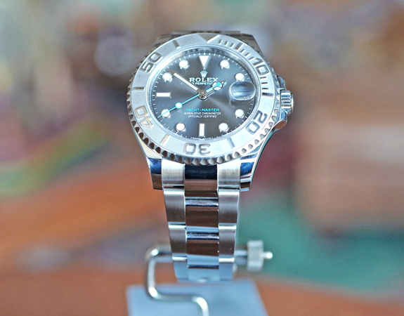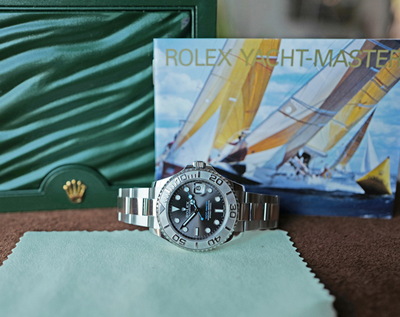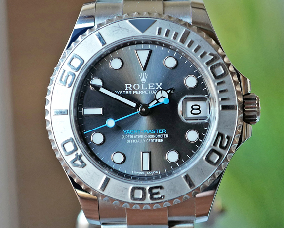 In my opinion, this model of Yachtmaster has the most unique and beautiful Rhodium (Grey) Sunray Dial. The light blue Yachtmaster Logo and large sweeping second, make it look even better! This is considered a Unisex Sport Watch due to it's size. The size is perfect for women or small men. Of course, the Platinum rotating bezel also looks awesome by giving it a classy yet sporty appearance. Of course it is useful too! As a matter of fact, the automatic self-winding movement, date feature at 3 o'clock. luminescent hands and markers and being waterproof to 100 meters makes this timepiece a great daily wear watch!