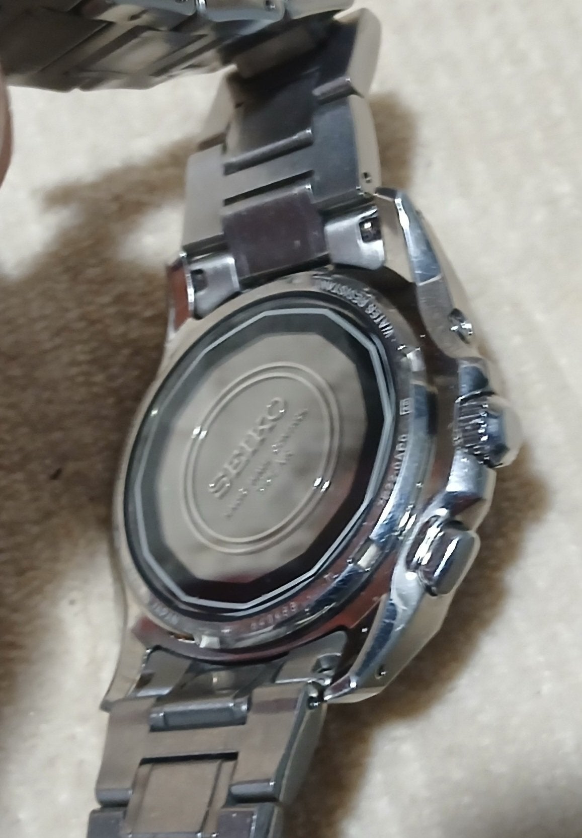 Bright titanium case and bracelet (surface hardened titanium alloy developed by Seiko)