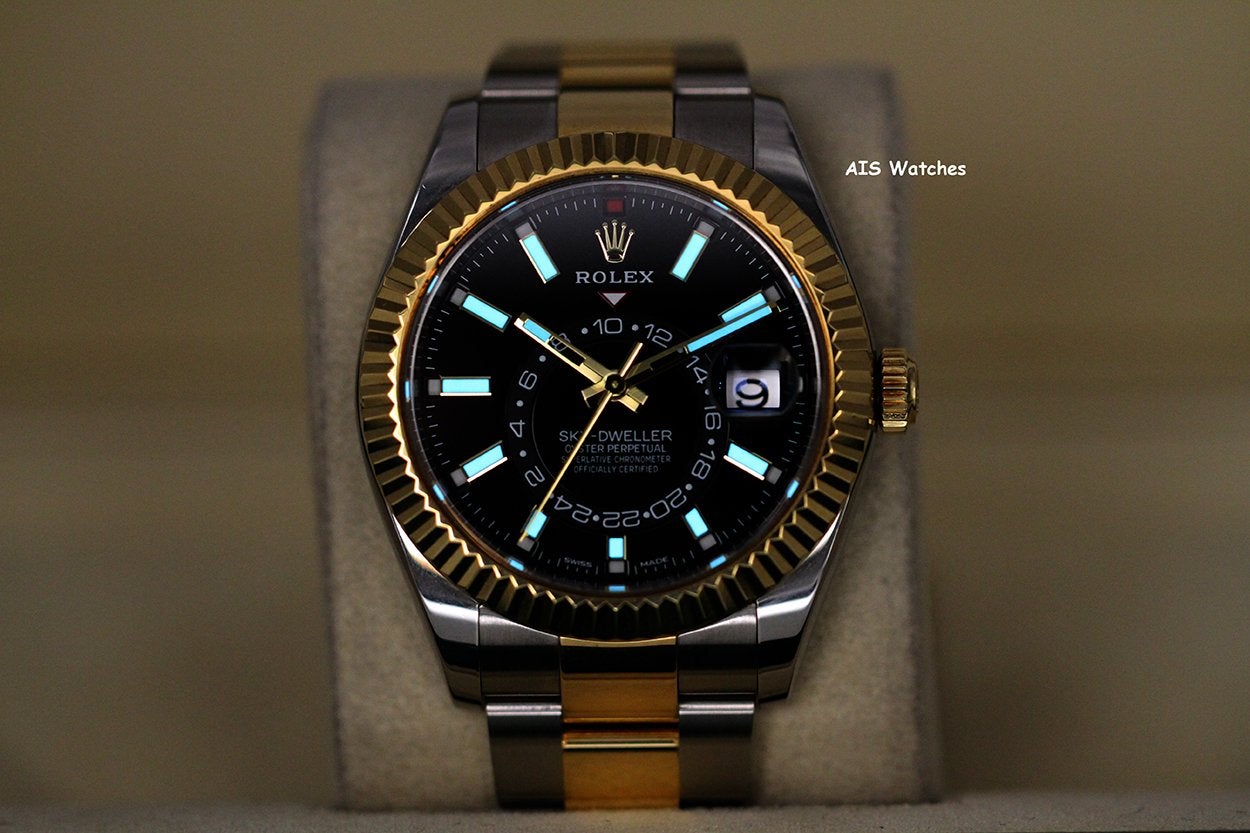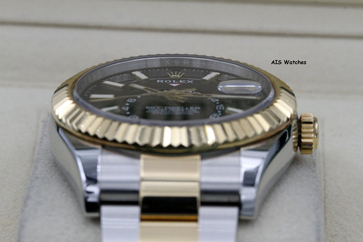 ** Rolex 326933 Sky-Dweller 18K Yellow Gold / SS Oyster Black Dial