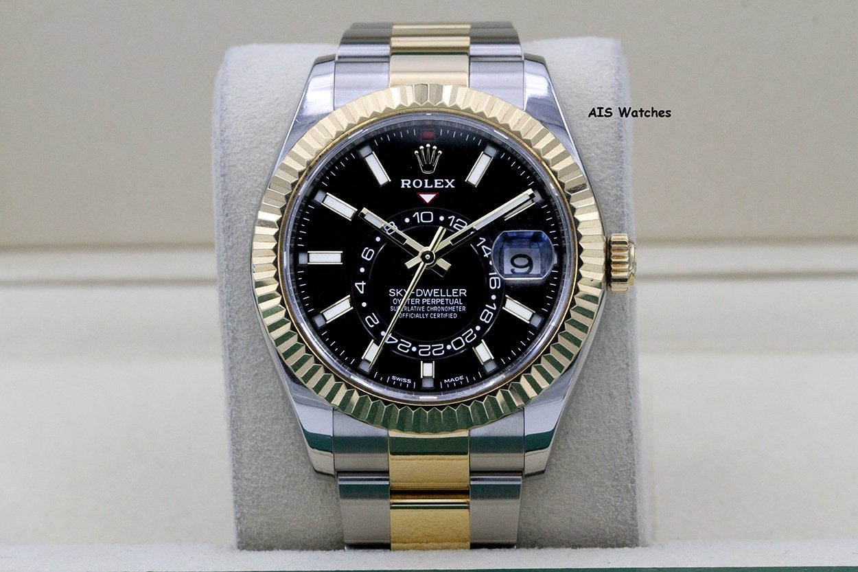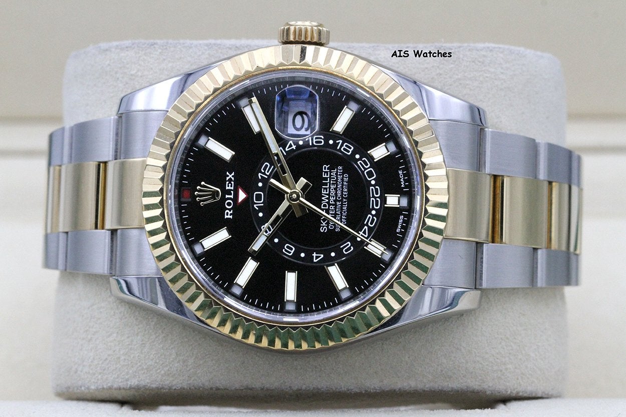 FSOT: Rolex 326933 Sky-Dweller 18K Yellow Gold / SS Oyster Black Dial B&P