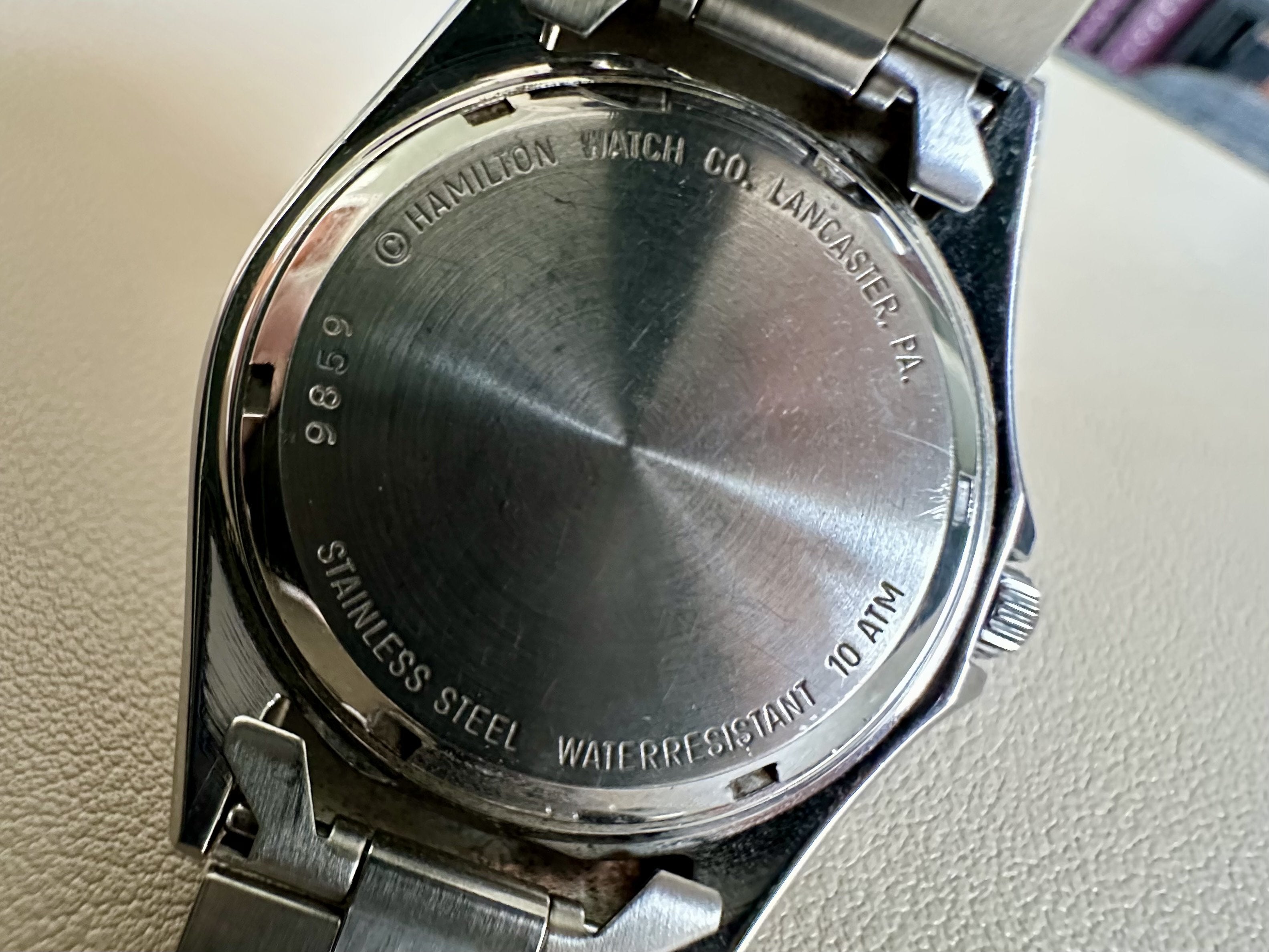Details: Thin, super comfortable Quartz Hamilton. This sub comes with a unique-directional bezel, and a Hamilton original president style bracelet. This watch is in good condition, and is ready to wear. This Hamilton is a pleasure to wear, and will be a great addition to any collection!