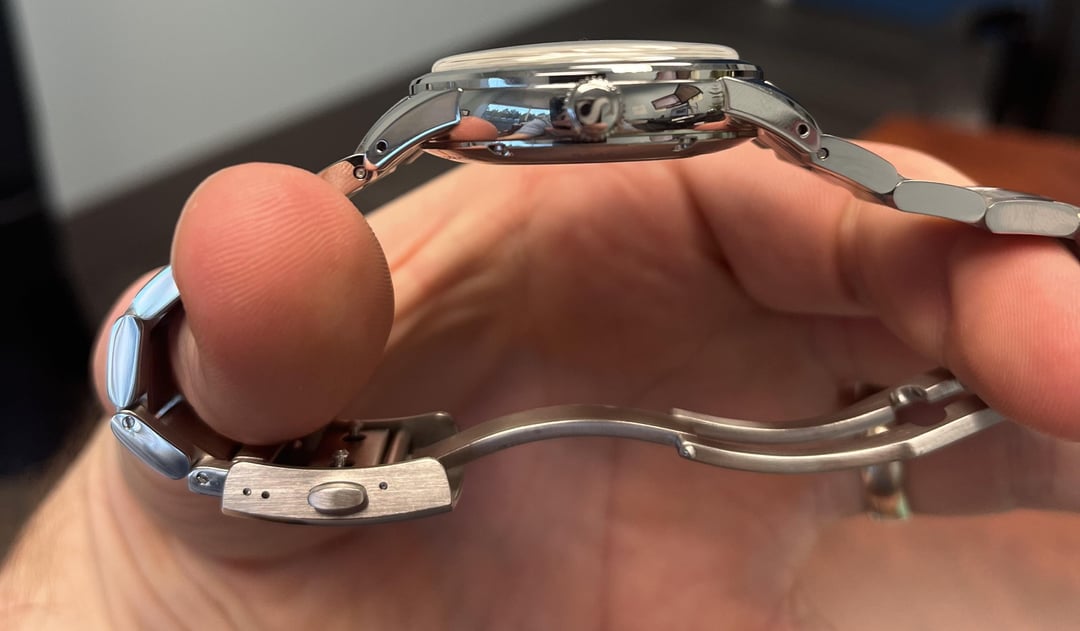 WTS this incredible value of a watch -- outstanding finishing and materials for the price. This watch has a Seiko NH34A movement, which in my experience is keeping +2/3 seconds per day. I'd rate the condition of this watch at 9.5/10. Bracelet and strap are unused -- I used a different 19mm strap with this. The cream enamel dial really shows off the beautiful silver hands, and the blue GMT hand looks excellent. Comes with original kit, and includes additional 4 full size links. Looking for $150 + shipping. I can ship to contiguous US, and accept Zelle as payment.