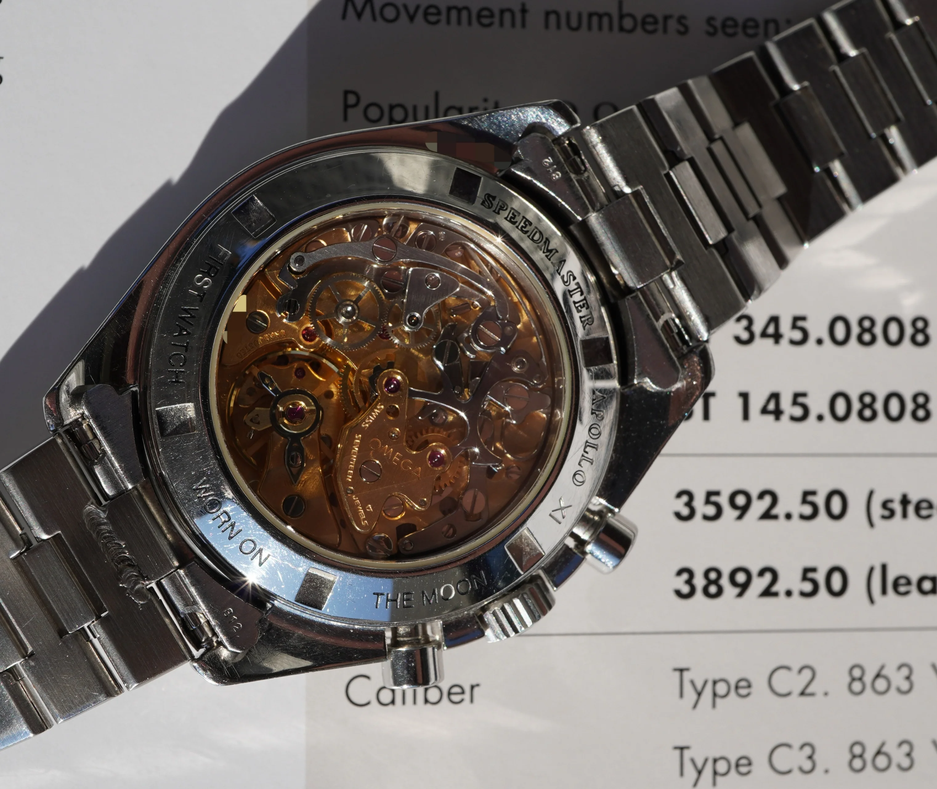 I have bought this Speedmaster four years ago and always enjoyed the beautiful tritium patina on the dial and hands. The yellow plated caliber 863 is also a real beauty and can be seen through the display back.