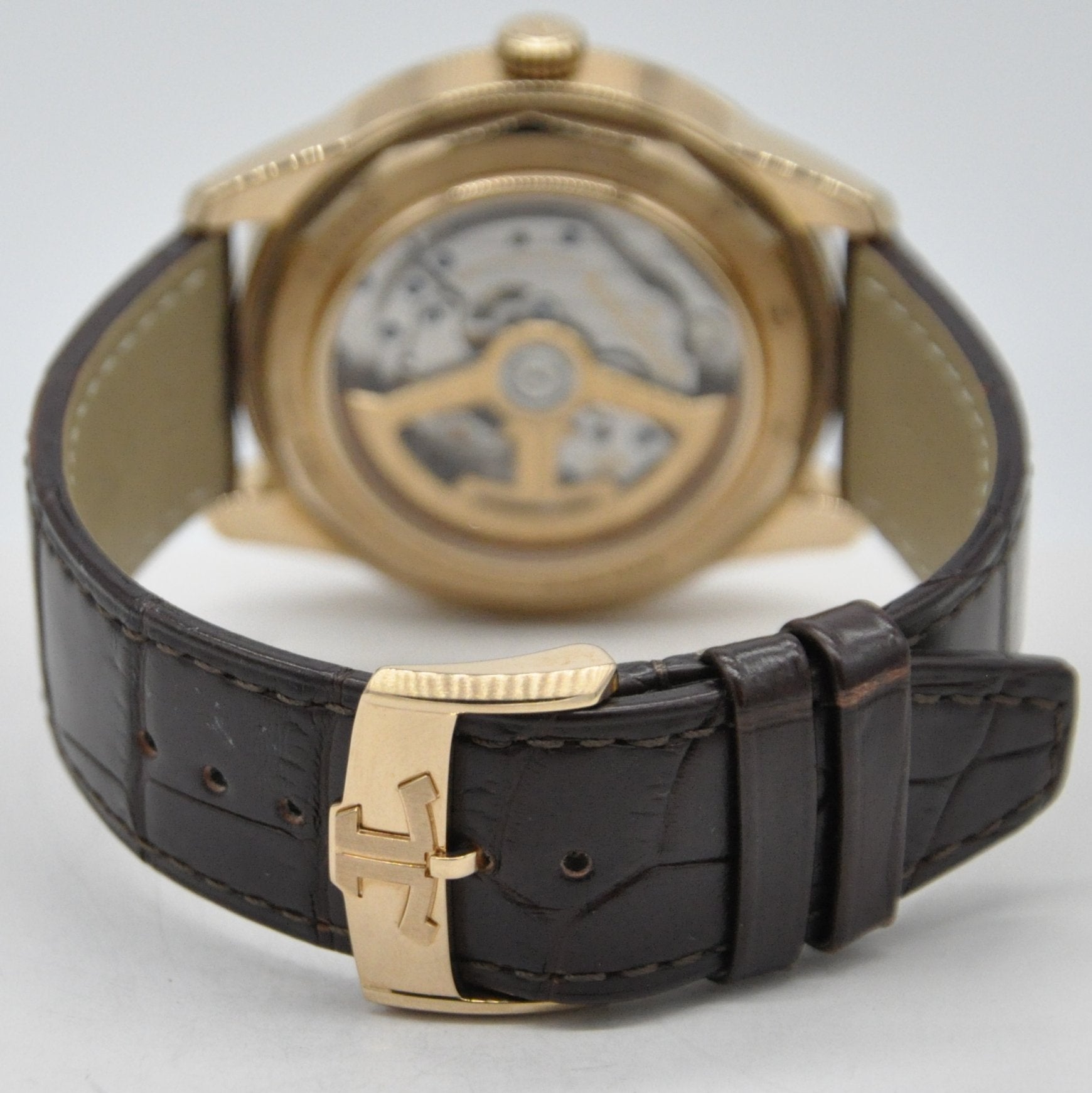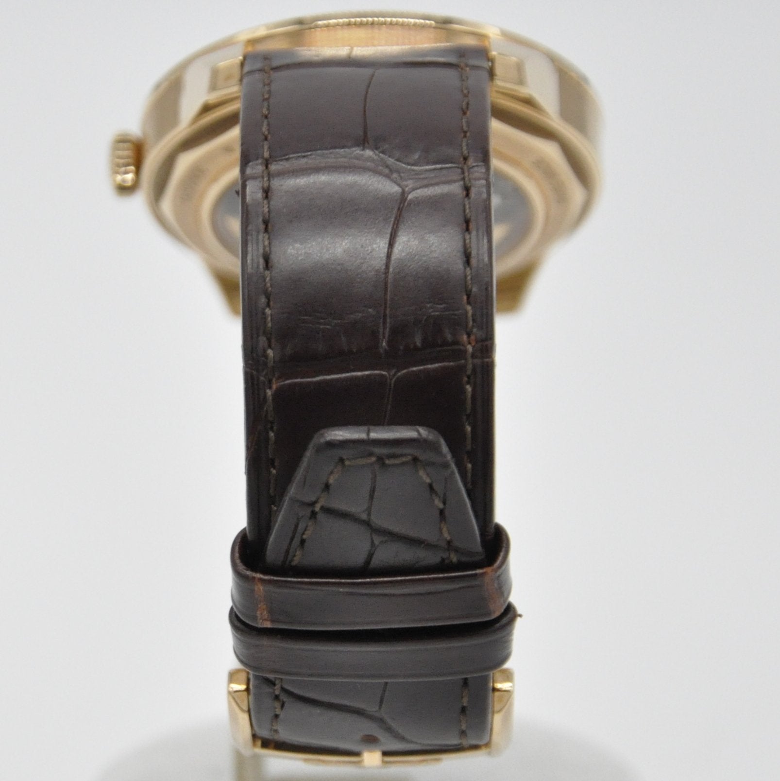 Band: Jaeger LeCoultre Brown Leather Black Strap with 18k Rose Gold Buckle