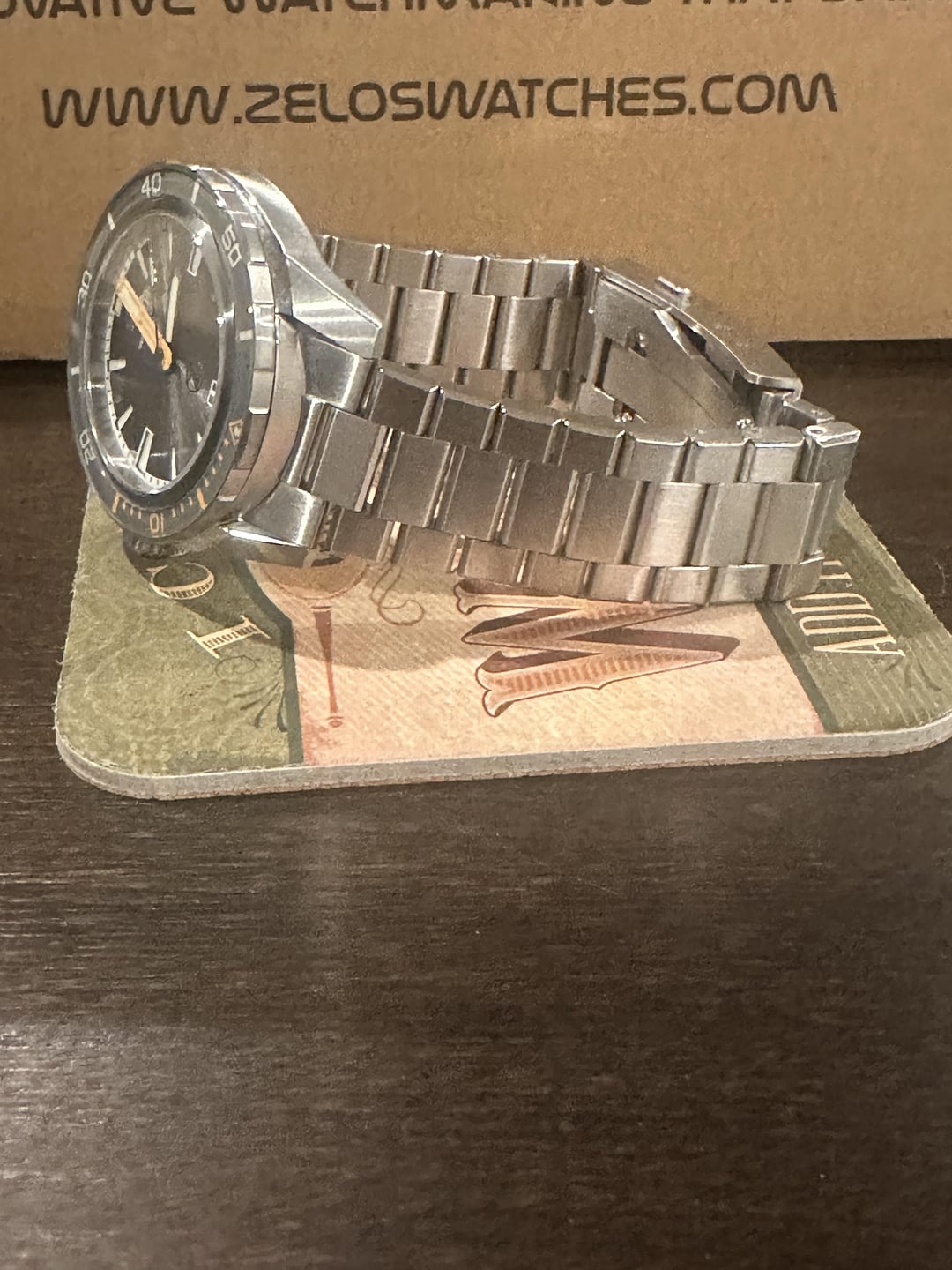 For sale is my Zelos 42mm swordfish Nimbus Grey This was worn several times. Crystal and case look very good. Light desk diving on the bracelet. Specs * DIAMETER : 42MM * LUG TO LUG LENGTH: 48MM * THICKNESS: 12MM * CASE: 316L SS * LUG WIDTH : 22MM * MOVEMENT: SEIKO NH35 WITH CUSTOM DATE WHEEL * WATER RESISTANCE: 200M * CRYSTAL: FLAT SAPPHIRE CRYSTAL WITH INNER AR COATING * LUME: SUPERLUMINOVA C3 OR BGW9 DEPENDING ON MODEL * BRACELET: 316L SS WITH UPDATED QUICK ADJUST CLASP AND FEMALE END LINKS Asking $395 obo; includes insured shipping to CONUS. Preferred payment Zelle of PayPal F&F for those with a Reddit transaction history.
