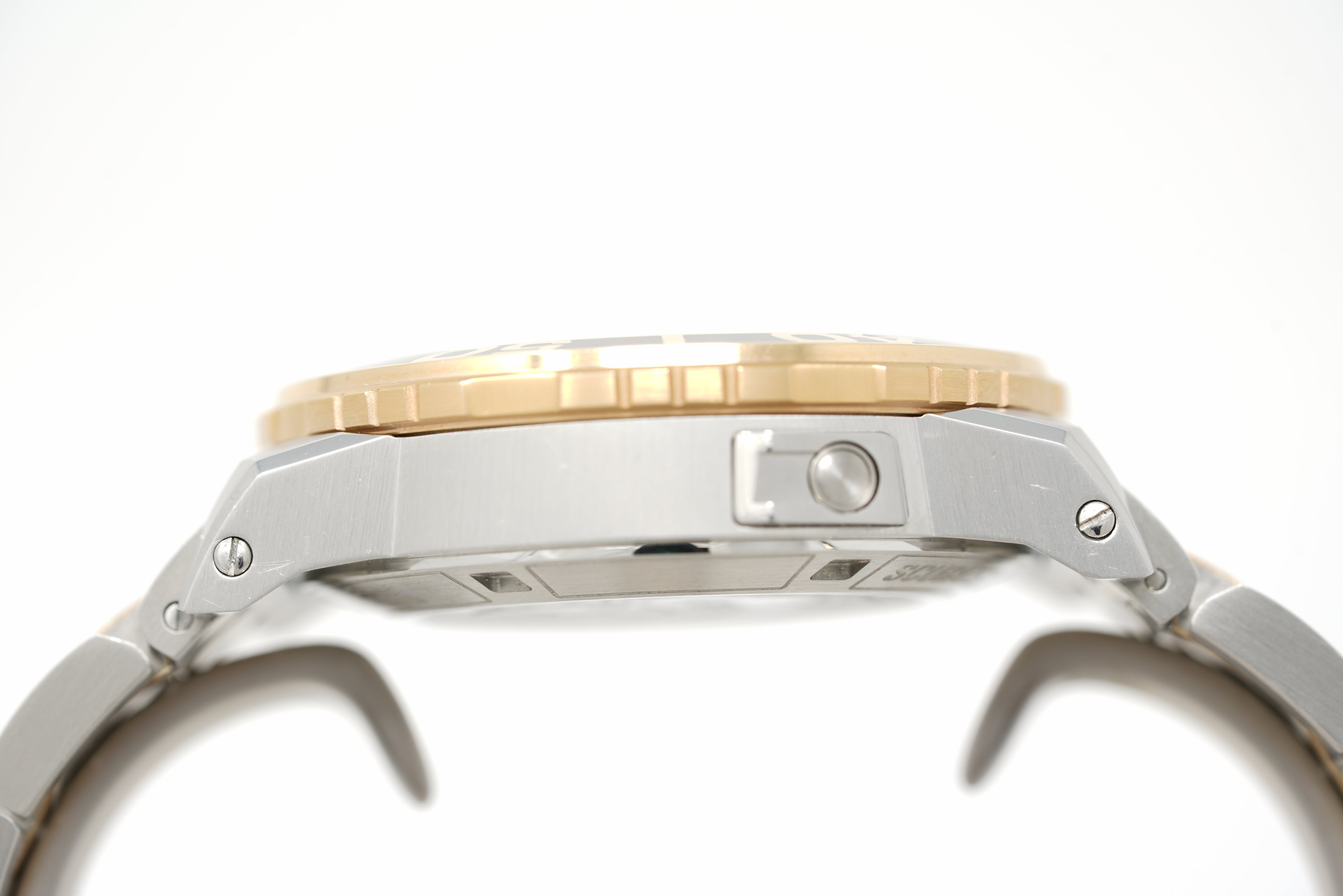 This pre-owned watch is in 88% condition due to slight marks on the lugs, bezel, and throughout the case. The replacement OEM bracelet is in 90% condition due to slight marks on the links and clasp. Originally purchased in July 2023, this watch comes with its inner and outer box, instruction manual, original purchase receipt, and the one-year Topper Pre-Owned Select warranty.