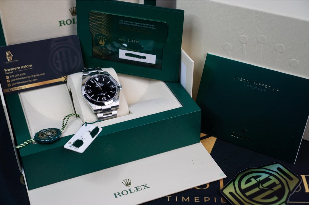 - TIMESTAMP: https://imgur.com/a/yNI0LU6 - Video: https://imgur.com/a/b75MTaX For Sale: 2023 Rolex Explorer 40mm Ref. 224270 | Complete Set The Rolex Explorer, reference 224270, is an exquisite blend of durability and elegance. The striking black dial, adorned with luminous hour markers and hands, ensures excellent readability in any light. This timpiece offers unparalleled accuracy and reliability, making it an ideal companion for both daily wear and adventurous pursuits. ✨ Features: * Model Ref: 224270 * Dial: Stunning Black Dial * Movement: Automatic * Case Size: 40mm * Bracelet: Oyster Steel with Oyster Clasp 🕰️ Condition: PreOwned - Excellent 💳 Warranty Date: May 2023 📦 Complete set includes: - Double Boxed - Warranty Card - White Tag - Green Tag - Manuals 💰 Price: $7,995+Shipping via Wire/Zelle/USDT 📍 Location: Chicago, IL 📩 Contact: - 📞 Call/Text/Whatsapp: 872-203-5209 - 📸 Insta: @goodtimesluxury - 🟦 FB: waseem.aslam.31586 (Meta Verified) ⭐️ 5-Star Reviews on Google 🌐 Google us: Good Times Luxury Chicago About me 🙋🏻♂️: My name is Waseem Aslam, Owner of Good Times Luxury and Moderator for Watch Trader Community FB group. Please don’t hesitate to contact me with any questions. I’m proud to provide a top-notch buyer experience. I’ll happily provide more information/pictures/videos until you’re confident in your purchase. Thank you!