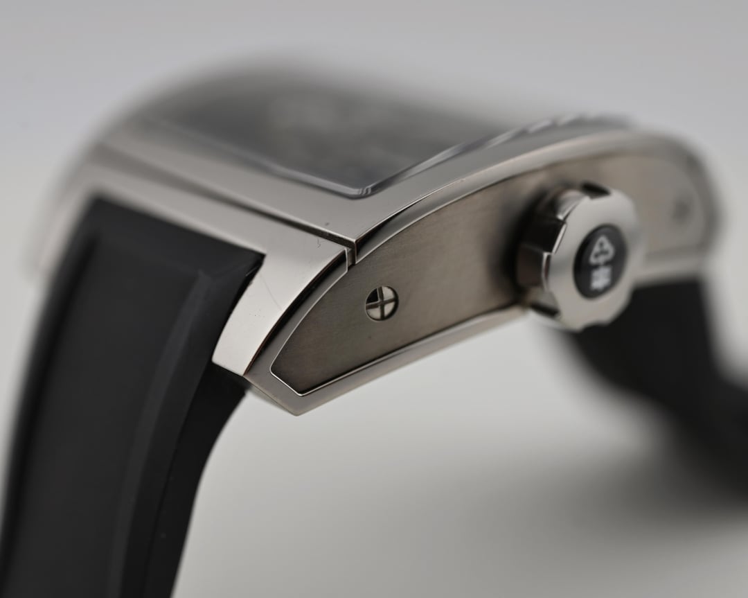 Launched in 2009 as a new era and line for the company with the second in-house caliber, the brand’s signature baquette movement was pushed technically with the addition of titanium cross bars and anti-magnetic, anti-corrosive materials combined with two barrels for a 3-day power reserve flying toubillon with anti-shock. The large case is made wearable being made in titanium and with a dramatic wrist-wrapping shape that conforms to even small wrists. If you’re looking for Richard Mille like engineering and futuristic design without looking like you’re wearing an RM (or spending that kind of money), this is a highly compelling technical watch. Case: The 42.5 × 52.5 × 13.2 mm polished and satin finished titanium case wears remarkably well for the dimensions, with a very ergonomic case shape and strap integration. The titanium case is finished exceptionally well and in excellent condition throughout, featuring a horizontal window on the caseback to display the winding mechansim and the back side of the flying tourbillon. Dial: On the “dial” side, the Ti bridges and “floating” flying toubillon featuring the signature double key design captivate your attention through the screen like curved crystal. Movement: The in-house caliber CO 022 is a 72-hour power reserve, double barrel, flying tourbillon with shock protection running at 21600 vph, and very mesmerizing, It’s currently running at approximately -0.6 s/d averaged across 6 positions. Includes: Outer box, inner wooden box, cleaning cloth, extra signed strap still in packaging. Price: $14,999 including insured shipping within the continental US, international shipping available at cost. Shipping from Phoenix, AZ, payment by ACH or Wire, no trades please. I have references here, forums, eBay, and Instagram (@)meticulist. Limited to just 99 pieces and originally offered at 59,500CHF, this watch is technically and aesthetically impressive, ergonomically comfortable and wearable, and a price that feels criminal.