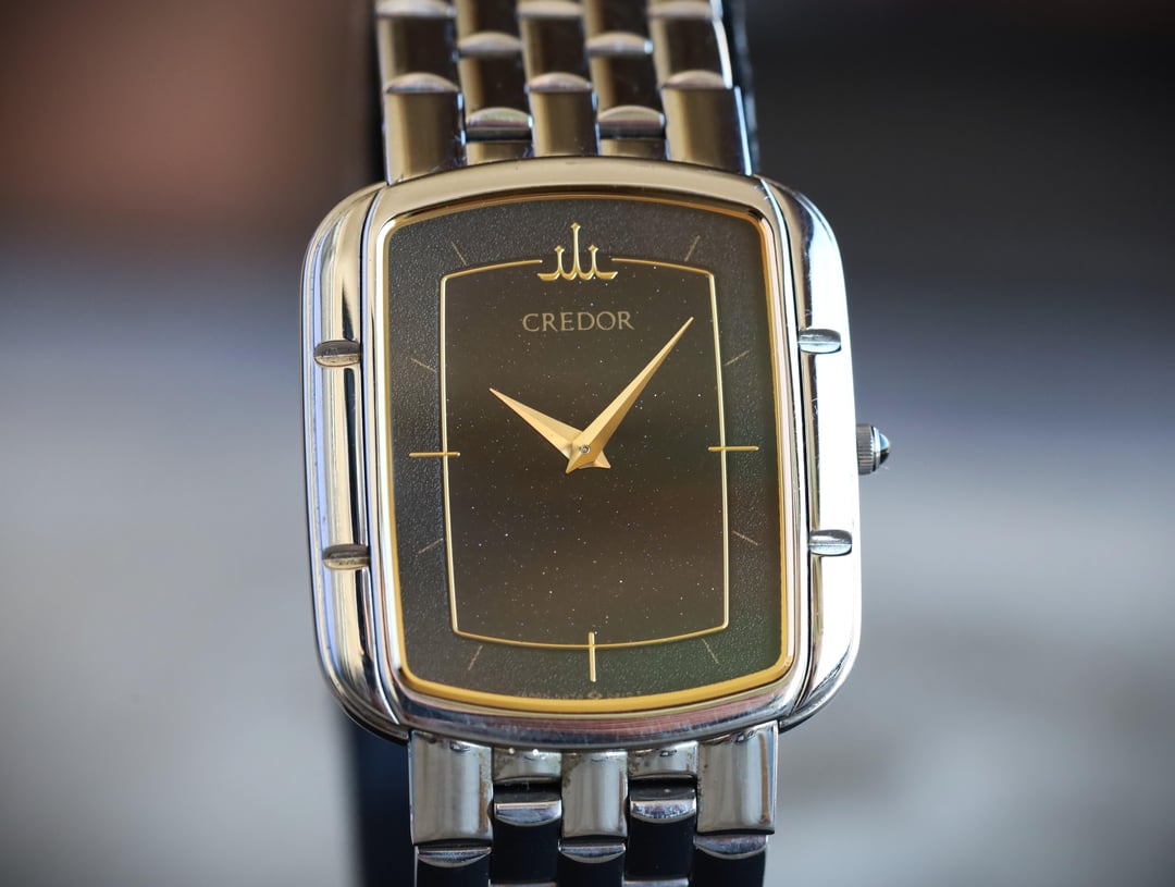 Today I am offering a very special and very rare Credor 5a74. This one features a Stainless Steel construction and a beautiful "interstellar" dial. **Features** Amazing condition and super rare 5a74 movement (according to Seiko you should expect 15 seconds per MONTH accuracy Sapphire crystal Bracelet features a butterfly clasp. AMAZING DIAL - This makes the watch. Super thin watch. Only 4.8mm tall MADE IN JAPAN for the JDM only. **Dimensions** 26.6mm across without crown 37.1mm lug to lug (but seems larger because the bracelet links stick out) 4.8 mm height Butterfly clasp. This makes this watch super comfortable to wear. **Overall Condition:** Excellent condition with minimal wear. All the functions work as they should. **Serial:** 771652 **Case and bezel**: Excellent. only very minimum signs of wear. **Bracelet and buckle:** Excellent condition. It's currently sized for a 7'' wrist. It comes with 1 spare link in case you need it. **Crystal:** Sapphire Crystal is flawless. **What’s included:** watch only. No box, no papers. **ALBUM** [https://imgur.com/a/ONlnEQF](https://imgur.com/a/ONlnEQF) [TIMESTAMP ](https://imgur.com/HLT7ej0) VIDEO: [https://imgur.com/a/dQ8IyCE](https://imgur.com/a/dQ8IyCE) **$349 shipped. No trades offers.** **Zelle is preferred. Paypal Friends and family accepted also.** **FAST shipping within the USA.** I ship from Los Angeles to the USA with USPS priority mail with insurance. I will ship the watch within 2 business days after payment. **Reference and reputation as a seller**: BUY THE SELLER! I have completed HUNDREDS of transactions here and at different watch forums. Deal with confidence. Check out WUS & REDDIT feedback & reputation. **Note:** Photos are my own. Photos are of the actual watch. Photos and videos are part of my description. I encourage all buyers to be sure of the watch you are buying prior to purchase. I will honor returns within 24 hours of receiving only if the product is not working properly. I do not accept returns for “Buyer’s Remorse.” If you have any questions ask.