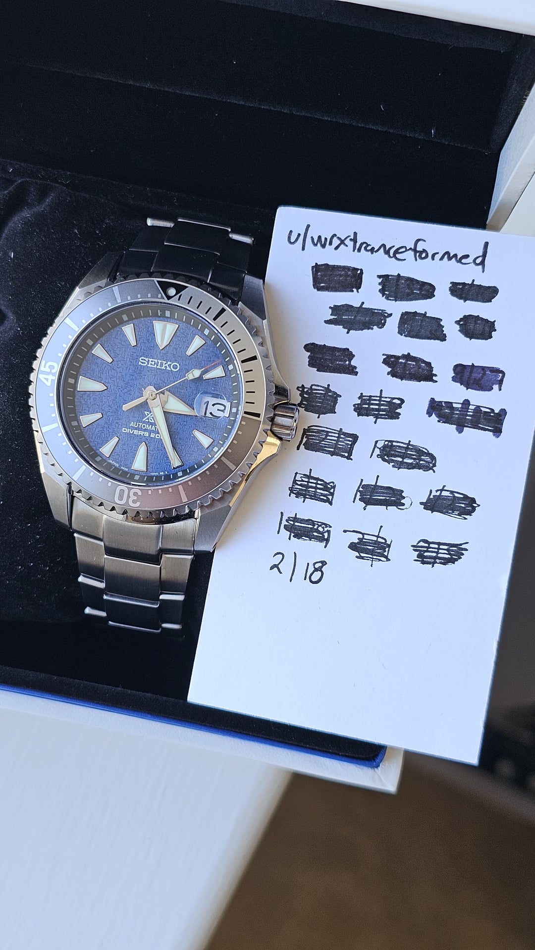 Hello folks! Available for purchase is a very minty Seiko Shogun SPB357J1 US Special Edition “Cave Diver”. This watch has a 43.5mm titanium case with super hard coating, 6R35 movement as well as a sapphire crystal with date oculus, helping elevate it over the standard Seiko divers. The textured dial pays homage to the “enigmatic allure of underwater caves” and looks incredible on the wrist. Condition wise I would put this at like-new. I cannot find any flaws on the watch or bracelet, in fact many of the protective stickers are still intact. The movement is running at 0.0 sec/day on my timegrapher app, basically flawless! Sale includes the full kit – outer box, inner box, paperwork, unsigned warranty card. Timestamp for Reddit: [https://preview.redd.it/wts-seiko-shogun-spb357j1-us-special-edition-cave-diver-v0-ans2vys20zje1.jpg?width=2252&format=pjpg&auto=webp&s=d3e0bfcdcf6a09e7bf649c23e203b9a74932c66b](https://preview.redd.it/wts-seiko-shogun-spb357j1-us-special-edition-cave-diver-v0-ans2vys20zje1.jpg?width=2252&format=pjpg&auto=webp&s=d3e0bfcdcf6a09e7bf649c23e203b9a74932c66b) I am asking $750 net to me including fully insured shipping in the US. Not interested in trades at this time, trade offers will be ignored. Please message me with any questions or interest and thanks for looking!