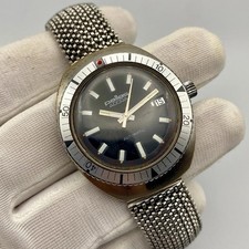 | NOS 40MM 1970'S STEEL YEMA SOUS MARINE " UFO " AUTOMATIC DATE -RARE BLACK DIAL evintagewatches4u (669) |