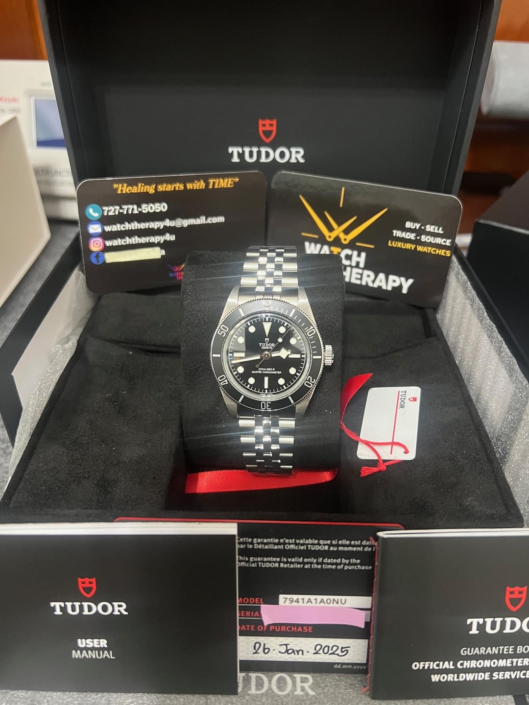 **F/S: New Tudor Black Bay 41 Monochrome Jubilee 1/25 Ref# M7941A1A0NU** **Specs:** \* Black domed dial w/silver hour markers \* Automatic self-winding \* 41mm \* Five-link Jubilee style bracelet with T-Fit clasp \* 200M Water Resistance \* 70-hour power reserve \* MT5602-U (COSC) movement **Includes**: Warranty card 1/25, double boxed, booklets and tag. **Condition:** 10/10 BNIB, unworn, unsized. **Price: $3,999.00+ Insured shipping to your local FedEx for pick-up in Con US**. I am also open to a face-to-face public transaction in or around the Tampa Florida Region, within reason. I have many strong and viable references within Reddit and from Buy/Sell/Trade Watch Facebook groups. Always willing to jump on a call or meeting link to show you the watch. Thank you and please reach out if you have any questions or concerns. Florida residents may be subject to sales tax w/o a valid reseller cert. ***No Trades, TY*** **Location**: Tampa Florida **Payment:** Zelle or Wire Timestamp: [https://imgur.com/a/MQZjnWz](https://imgur.com/a/MQZjnWz) FB: Watch Therapy Timepieces IG: [u/watchtherapy4u](https://www.reddit.com/u/watchtherapy4u/)