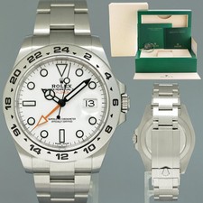 Up for sale a Rolex Explorer II 216570 with polar white dial! The watch is in excellent condition and some factory stickers remain on the 11 link bracelet. Comes with: * Rolex Explorer II 216570 * 2013 warranty card * Rolex green box * Rolex white outer box (shows some wear) * Service booklet * Explorer II manual * Red hang tag * White serialized hang tag Album: https://imgur.com/a/iLKd3cW Timestamp: https://imgur.com/a/Ljdu2eT Offered at $8950. Payment via bank wire transfer. Includes free insured shipping inside the United States. Contact for international shipping. Always open for trades up or down, provided they make sense. Please include a trade value when offering a trade. All my watches are guaranteed authentic and I will stand by their authenticity 100%. Many references available.