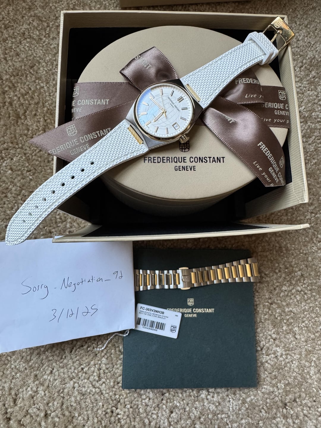 Up for sale today is my incredible FC Highlife with both OEM strap and bracelet. Comes with the original box and cert. Ref FC-303V2NH3B Priced to fly at $1200 shipped via Zelle or PayPal f&f Pictures and timestamp https://imgur.com/a/5Q8zHRO
