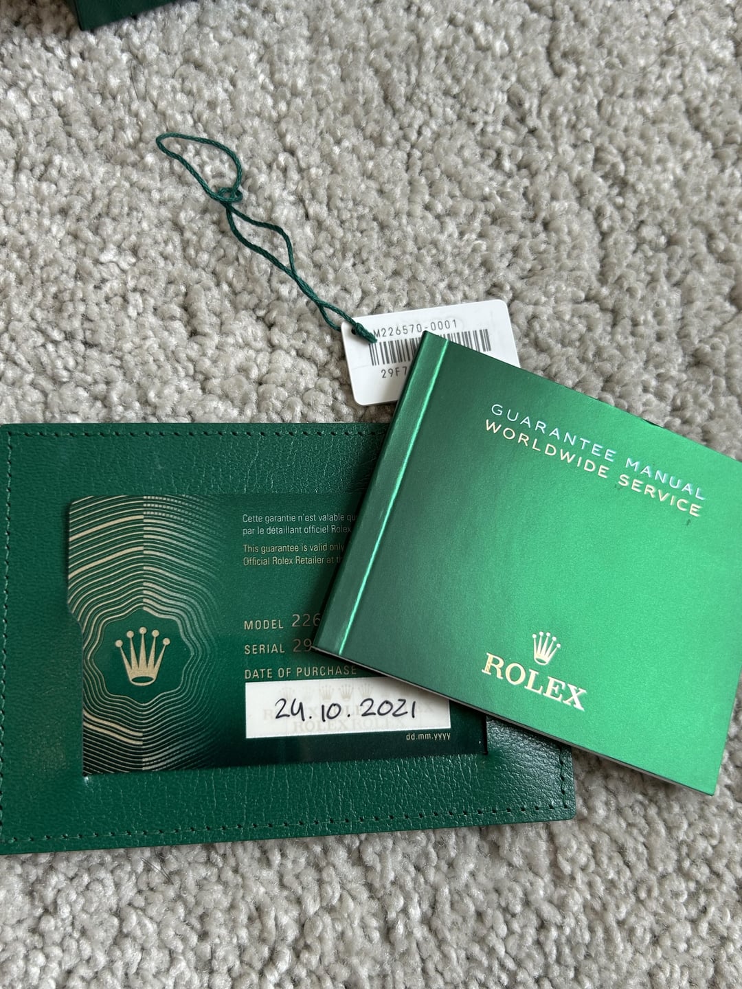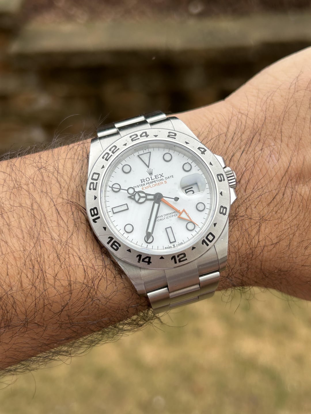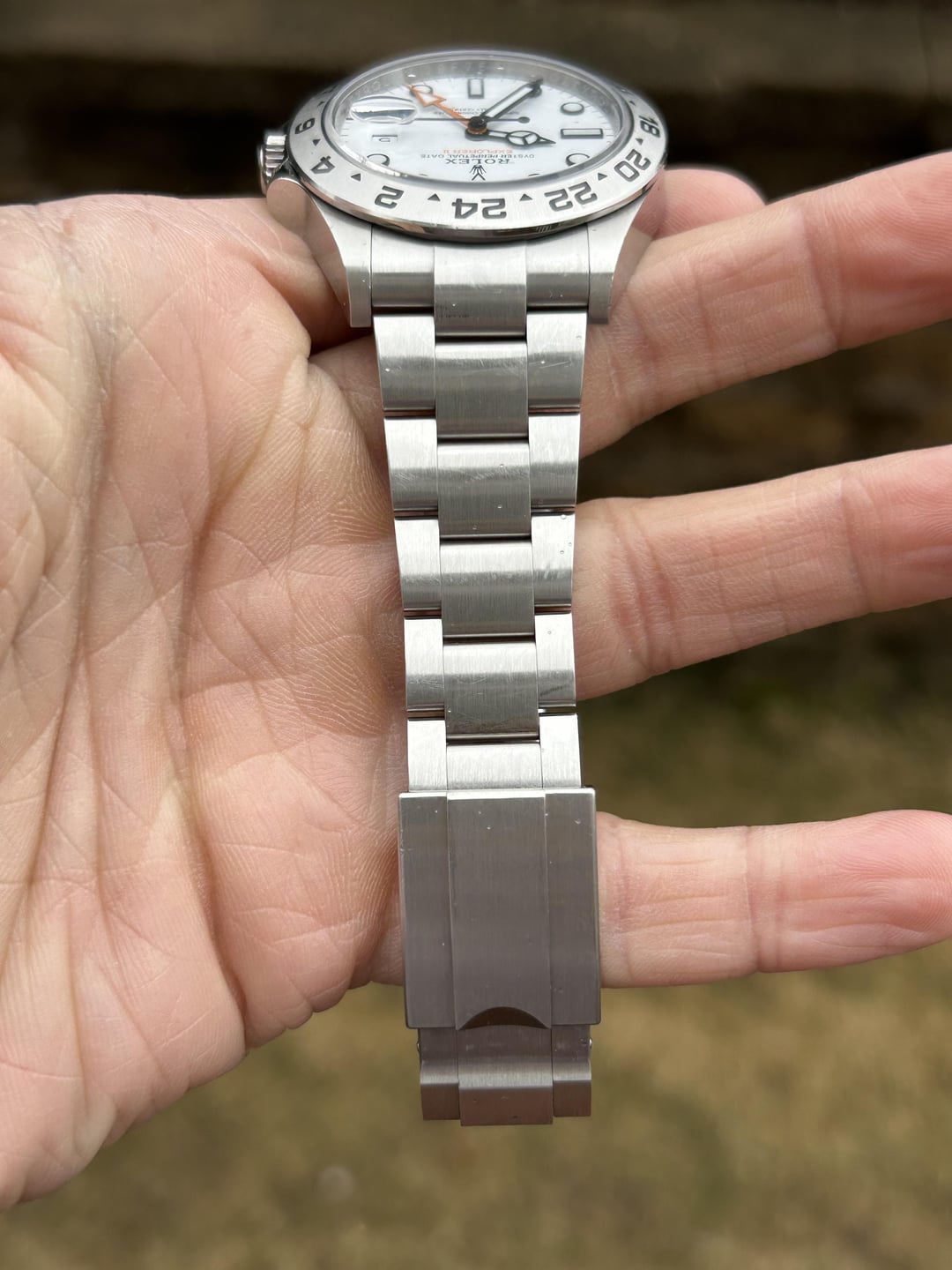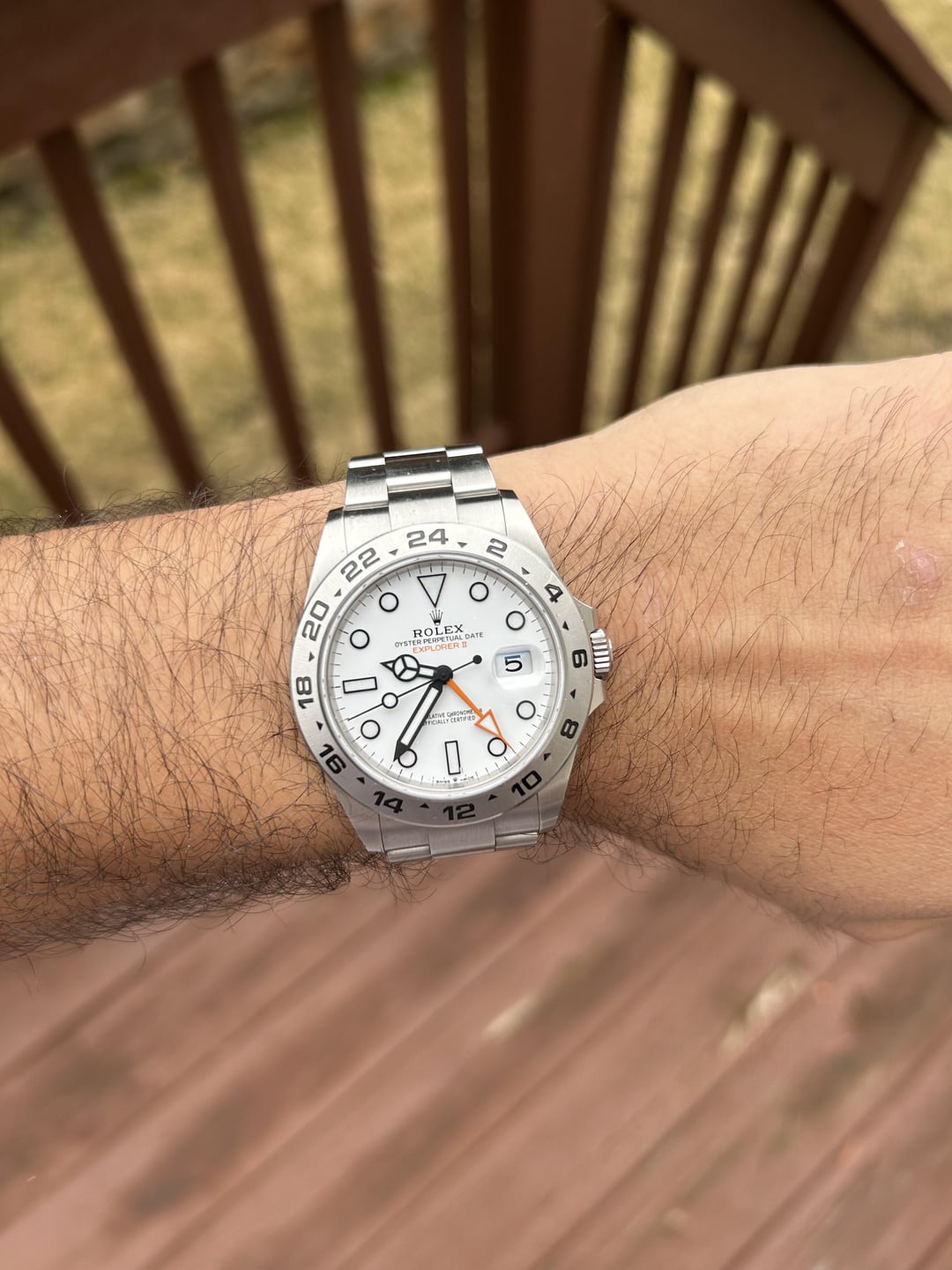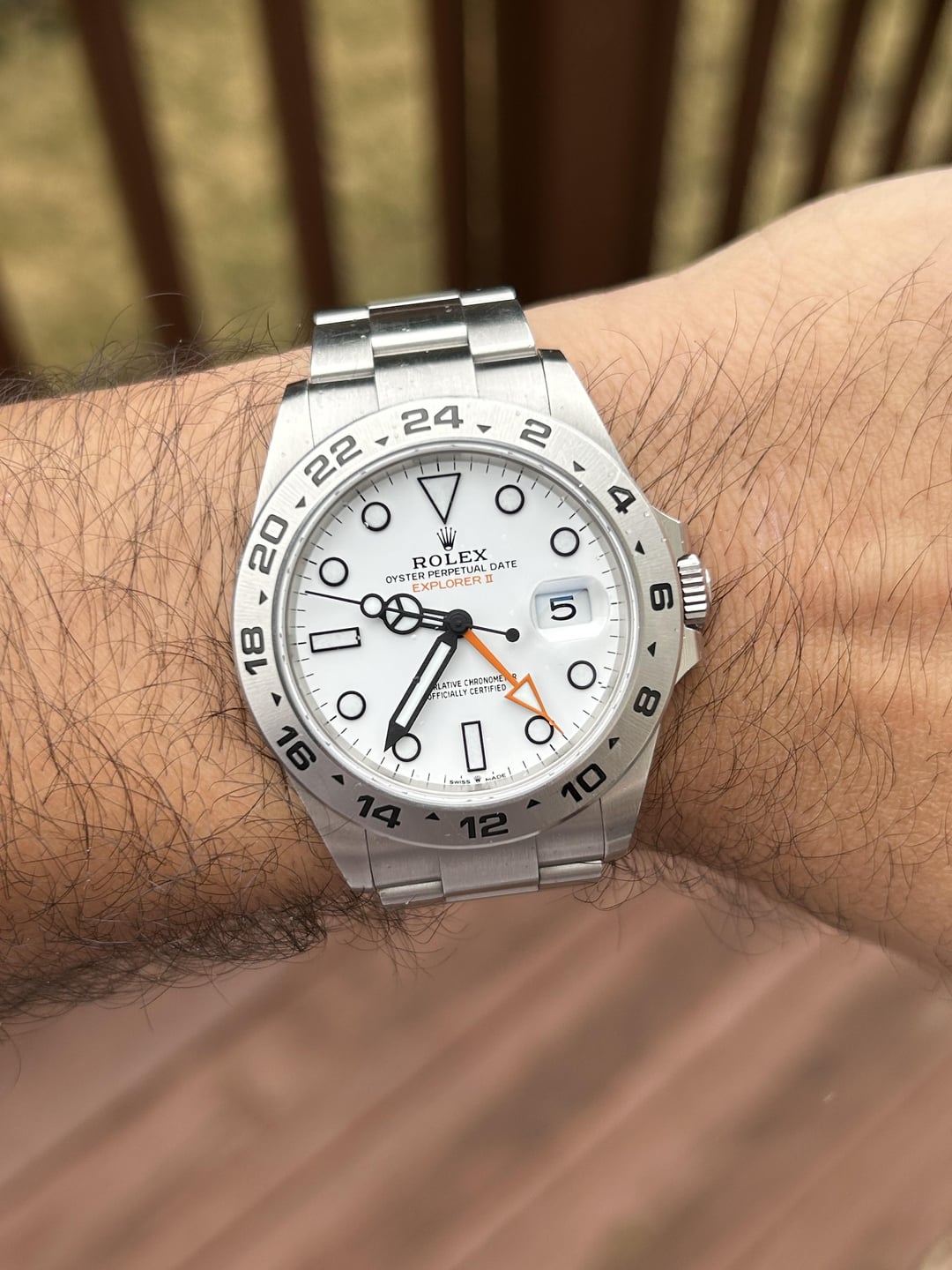 Hey watchex! Selling my Rolex Explorer II reference 226570 which is the newest current reference with the new movement and slimmer lugs. This is a complete full set with all boxes and papers, warranty card dated 10/2021. The watch is in used condition with scratches on bezel, case, bracelet and clasp. Crystal and dial are clean!Watch is running perfectly as it should. Small ding on bottom of non crown case side which is not noticeable when watch is on wrist. Please see all pics. Pics in album are taken in both outdoor and indoor light so you can see full condition of the watch. Perfect daily watch I absolutely love it but just need some cash right now! Album: https://imgur.com/a/E8SdYrH Timestamp: https://imgur.com/a/cyCNytq Asking price: $9799 shipped OBO! This is the best price on the market right now!! I am open to face to face transactions in the Chicagoland area. I have done over 85 transactions on r/watchexchange with flawless feedback. You can check r/watchexchangefeedback for older feedback. Also see: https://watchcharts.com/repcheck/reddit/torpedo109/feedback. Please don’t hesitate to ask any questions. I welcome phone calls or FaceTiming. You can txt me directly at 810-265-9998 also. Thanks!
