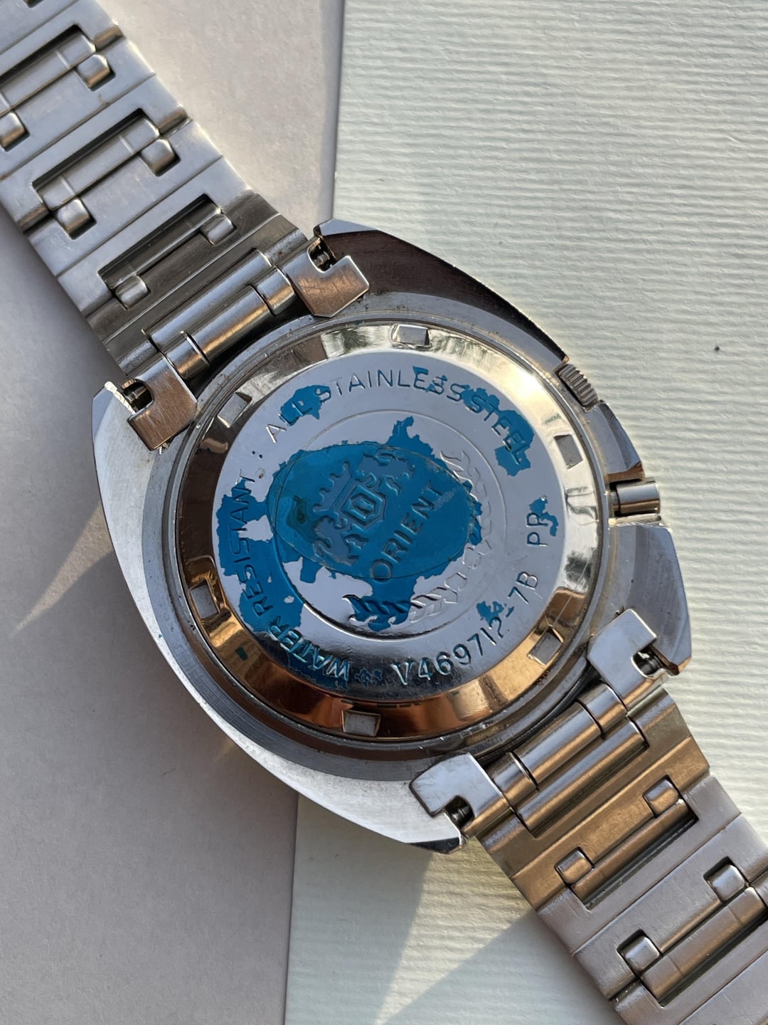 Up for sale is a Japanese-made Orient, reference V469712-7B, powered by an automatic movement housed in a 37mm case. It features a stunning gradient dial with a day/date window and comes on its original bracelet, which fits wrists up to approximately 7–7.1 inches. The watch is running well and keeping good time. Overall, it’s in good condition with definite but light signs of wear on the case and bracelet, along with some light scratches on the crystal. Price includes shipping via FedEx. Payment accepted through Zelle or wire transfer. Please note that the watch is scheduled to ship within 2–3 days of payment.