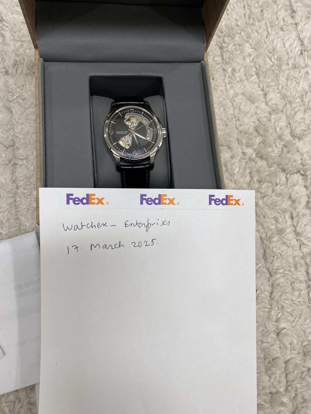 Hello All - I am putting for sale - Hamilton Viewmatic. Open Heart. Skeleton. Full kit including purchase invoice. 📷 More Pics: https://www.dropbox.com/scl/fo/oedbnad8qjc3vkz5eocd0/ALe8IX9Hx_ZYl7cctV6JtO0?rlkey=4ksyh4pgkvjsv2kog9od13w90&st=okeaoy8o&dl=0 📆 Timestamp: https://www.dropbox.com/scl/fi/4pq4uz7jpo9anc2bafy9k/Photo-Mar-20-2025-3-41-53-PM.jpg?rlkey=s76u455ko0eqc3dxii0wl5vq2&st=7e9o26ew&dl=0 I am asking $475 + shipping . Watch located in NJ USA. I am very comfortable doing a facetime to show the watch if needed. Please PM me for any questions that you may have. I am certain it will go to a good home. Thanks for looking. ** My profile has 400+ references. ** Checkout my profile for other amazing watches.