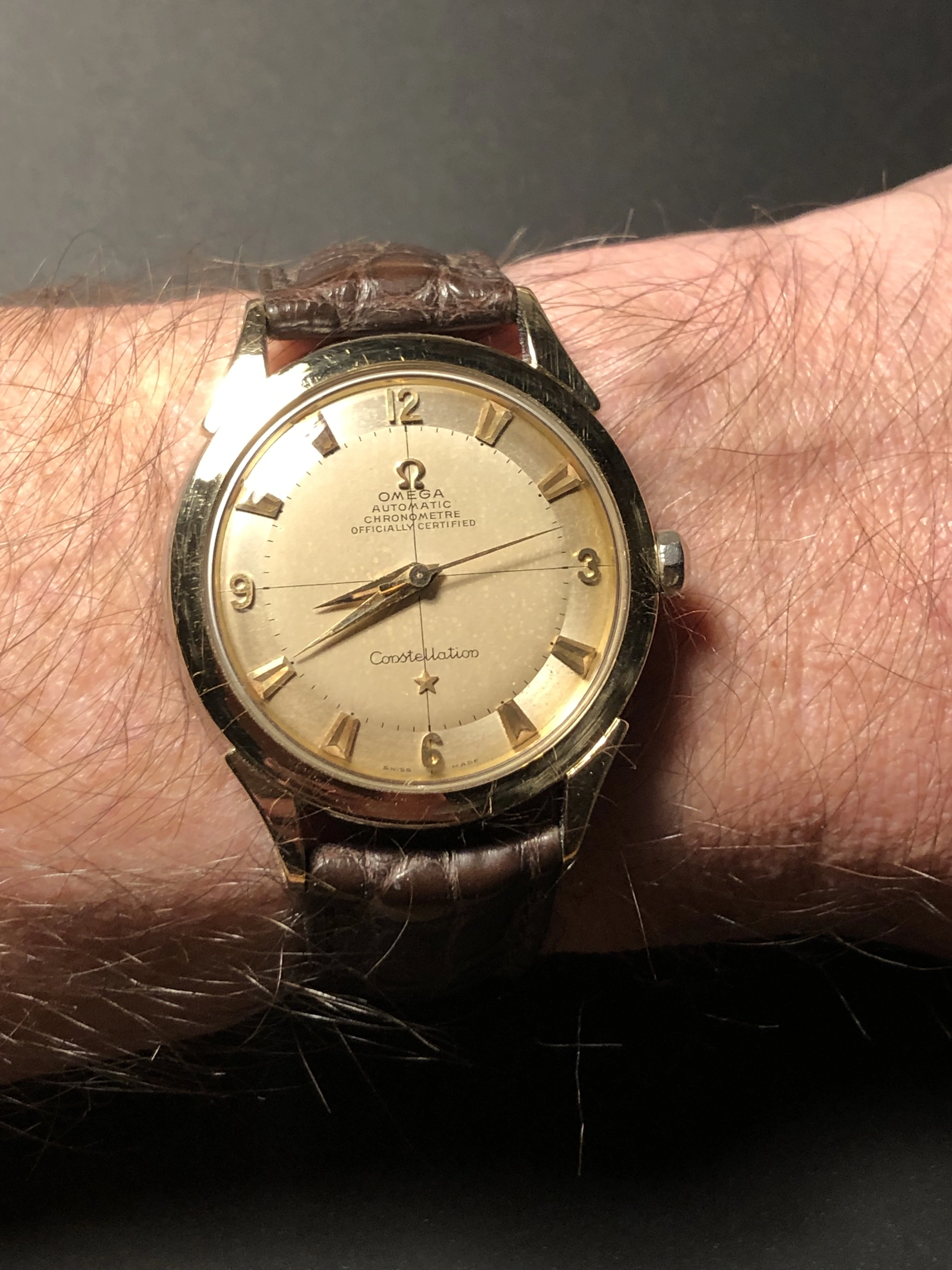 Up for sale is an attractive early Constellation. I bought the watch from the daughter of the first owner, and to my knowledge it has been taken good care of.