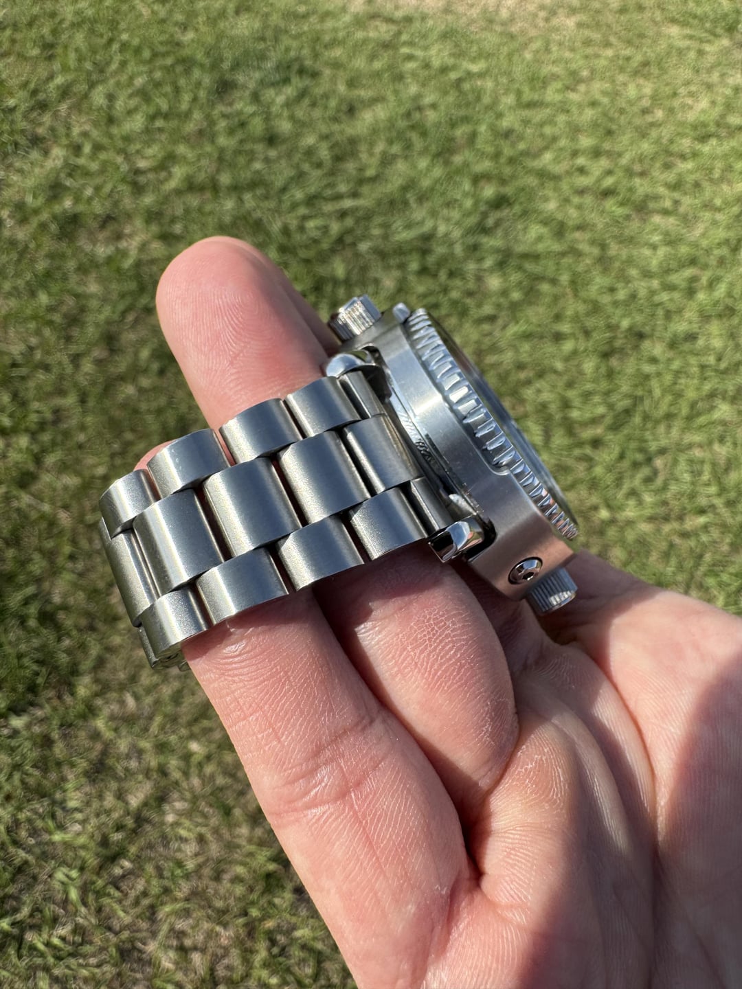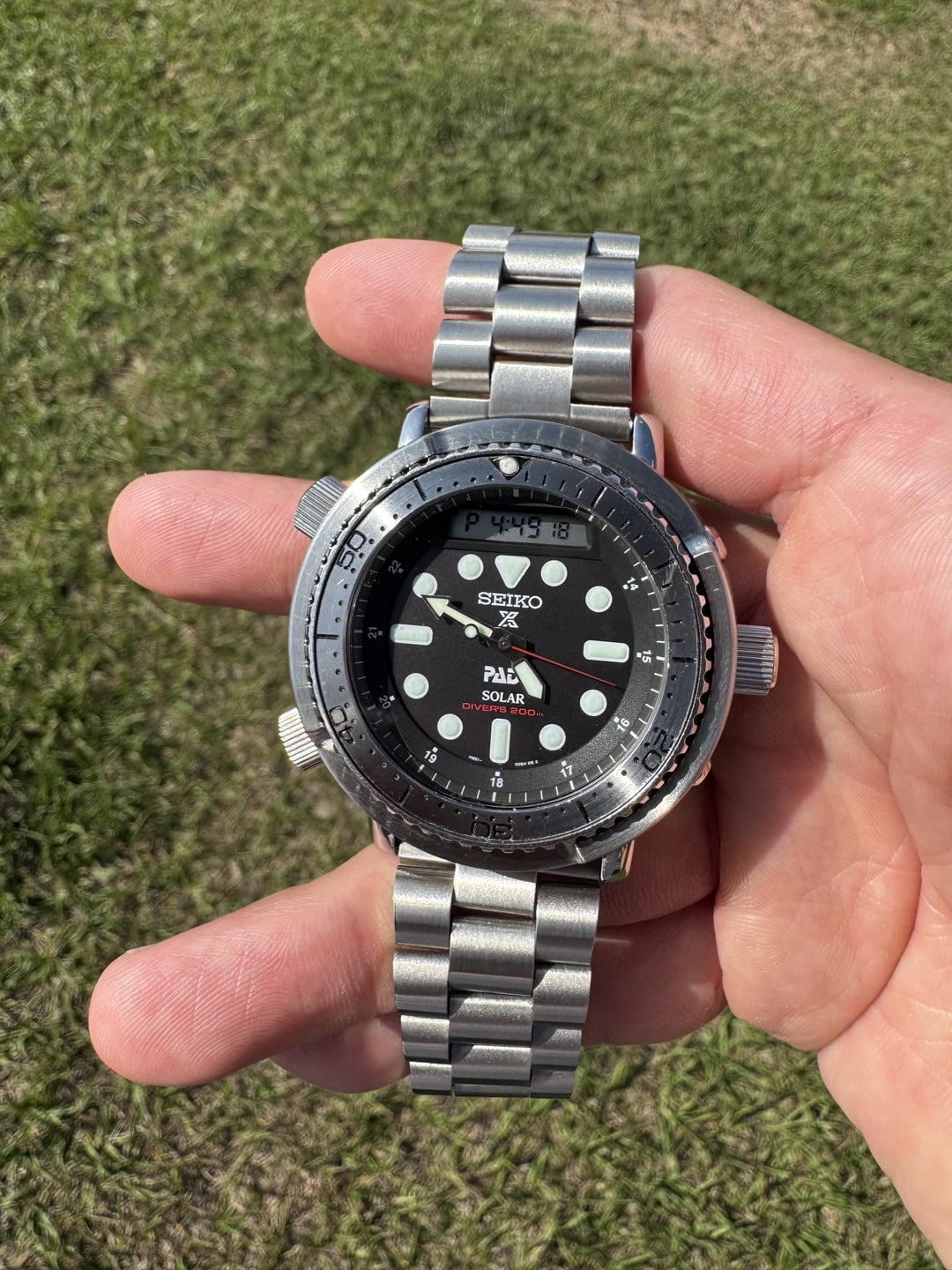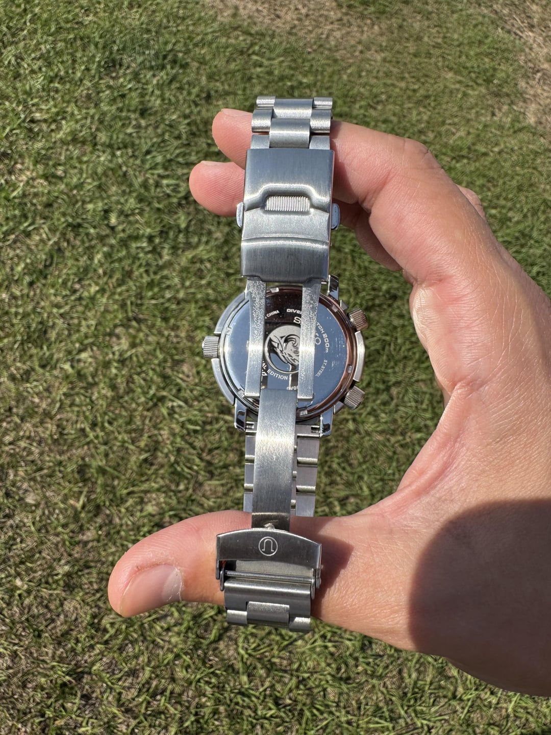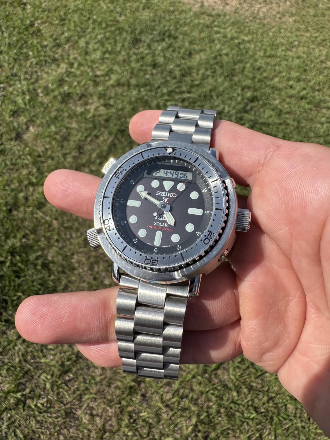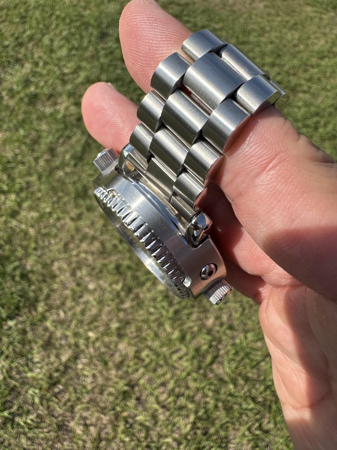 I’m looking to sell my Seiko Arnie. I bought this watch new and have only worn it about 10 times. Modified it to be fully stainless inspired by the T-1000 from Terminator. Stainless steel bezel insert (outside circumference had to be sanded down slightly and the dremel slipped in a couple spots- by the 10 second mark and the 30 second mark). Stainless steel shroud upgrade and Straight End Lincoln Bracelet bought from Uncle Straps (cost me $170 for both). All links are included. All other parts are original. Looking for **$330 shipped.** Photo album: https://imgur.com/a/a9LCA4S Timestamp: https://imgur.com/a/MmPIxCB